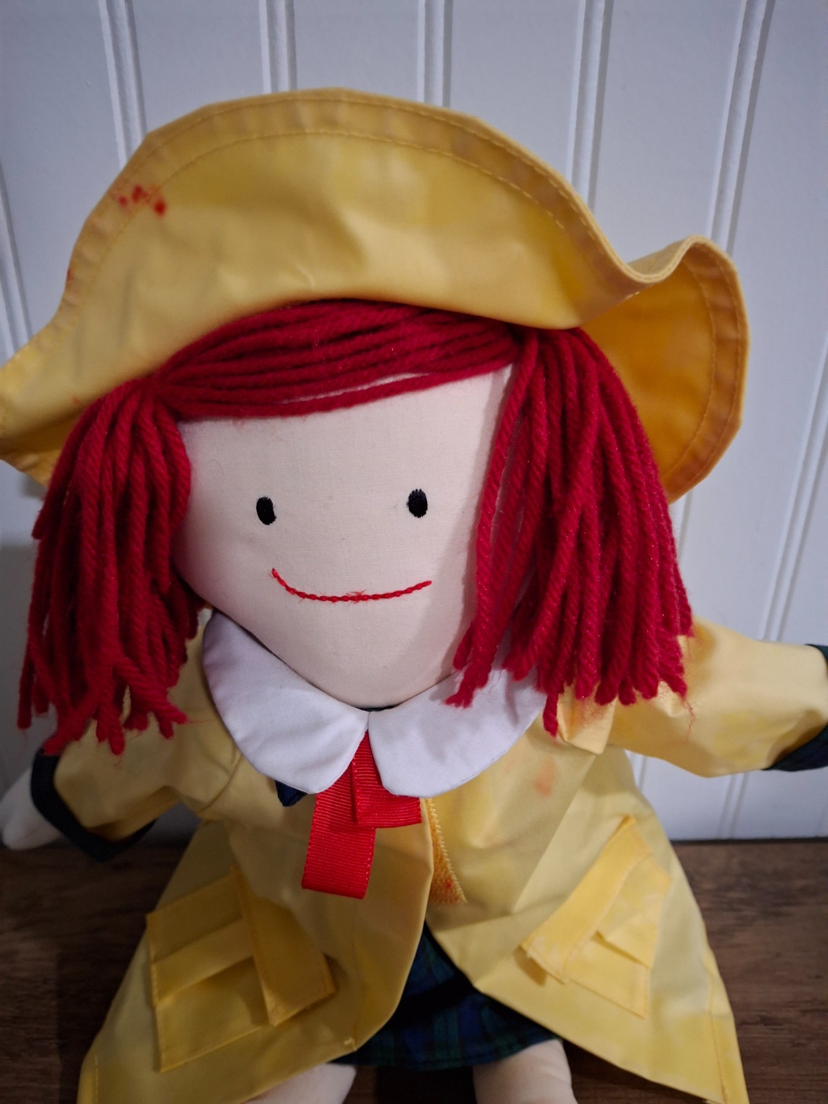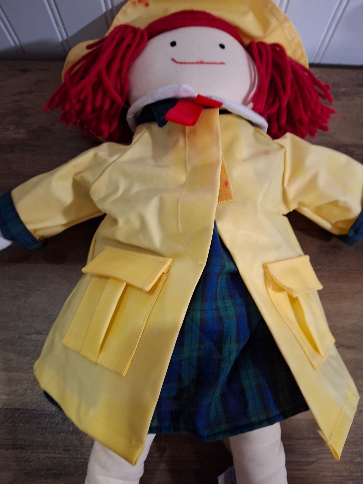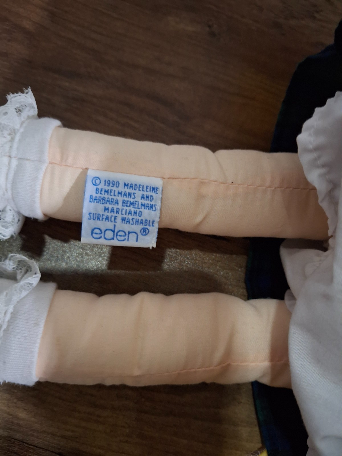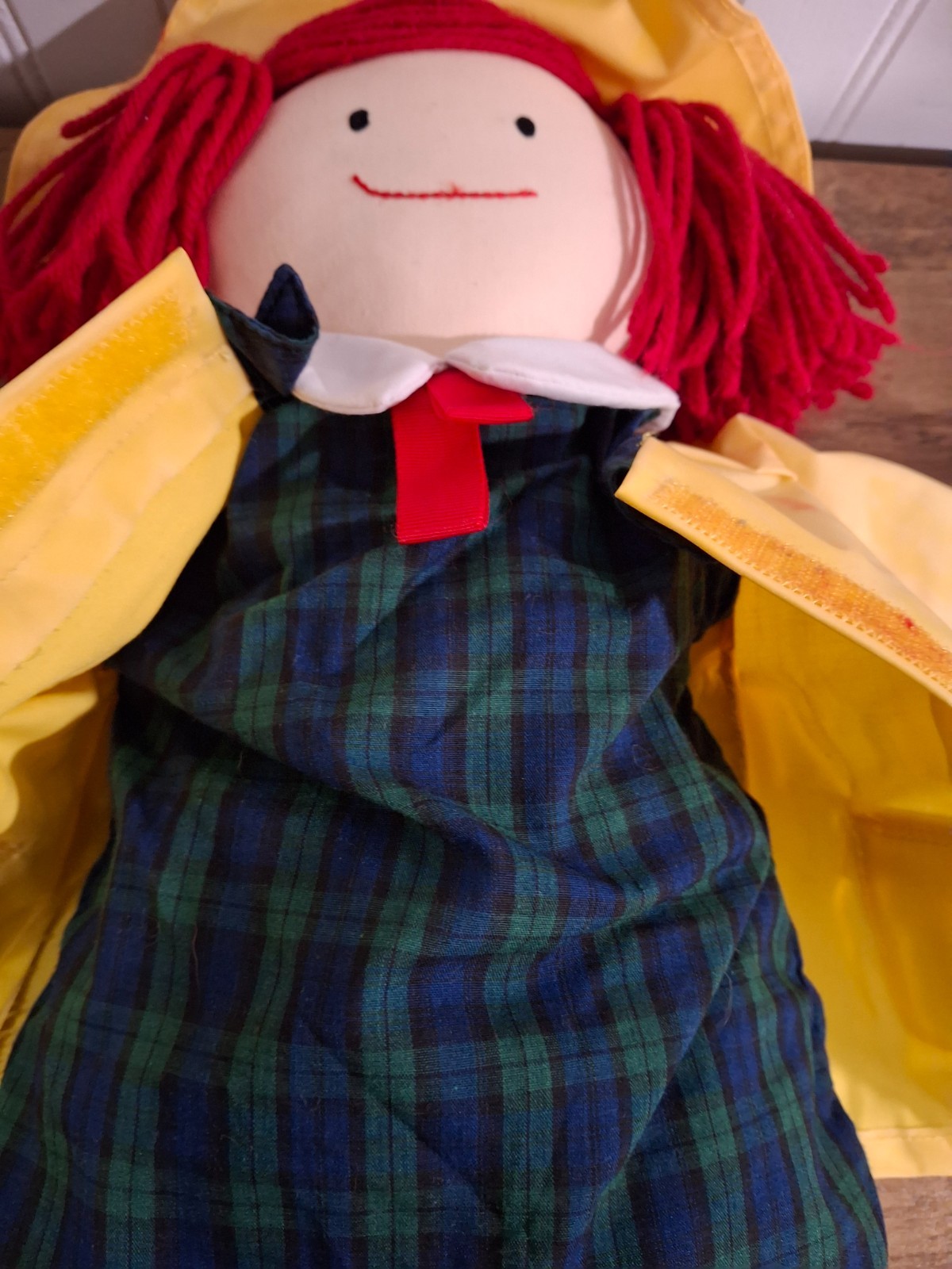 Vintage 1990 Eden Madeleine Cloth Doll Yellow Raincoat Plaid Dress Yarn Hair