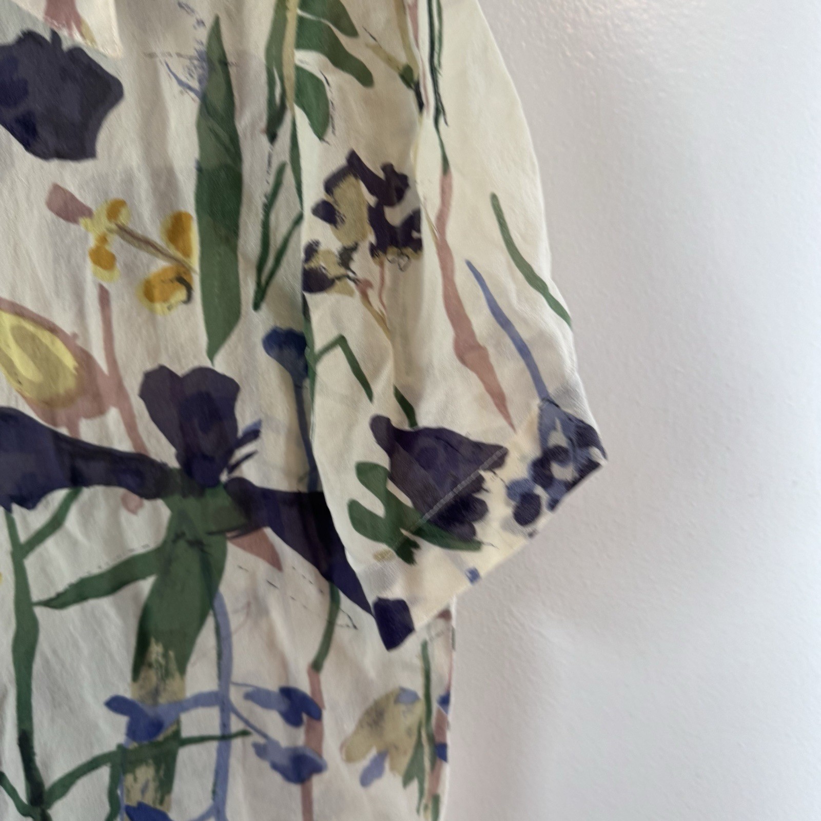 как выглядит Vintage Silk Chiffon Floral Art Shell Button Up Top Large фото