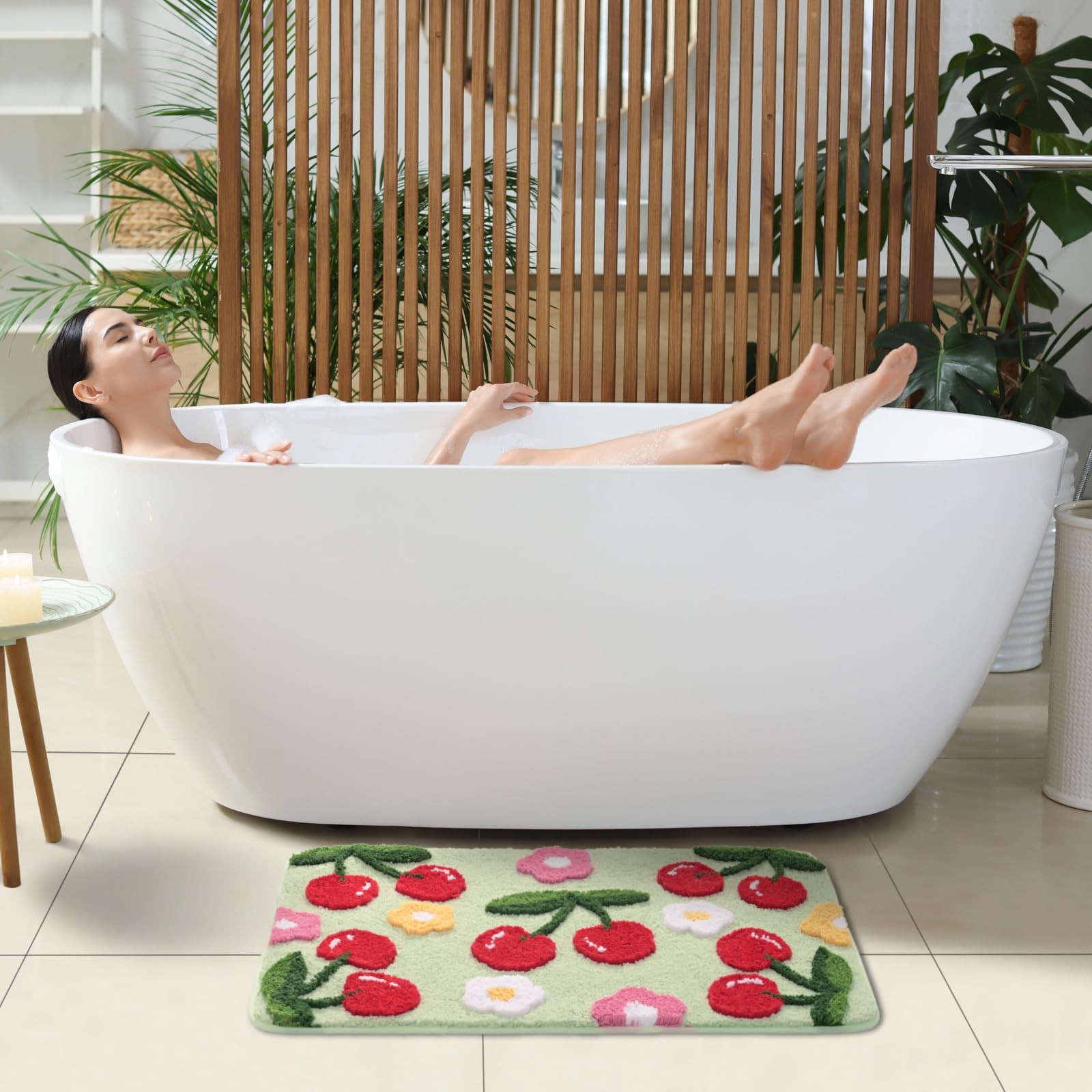 Green Bathroom Rugs Cute Cherry Bath Mat Coloful Bathroom Accessories Funny F...