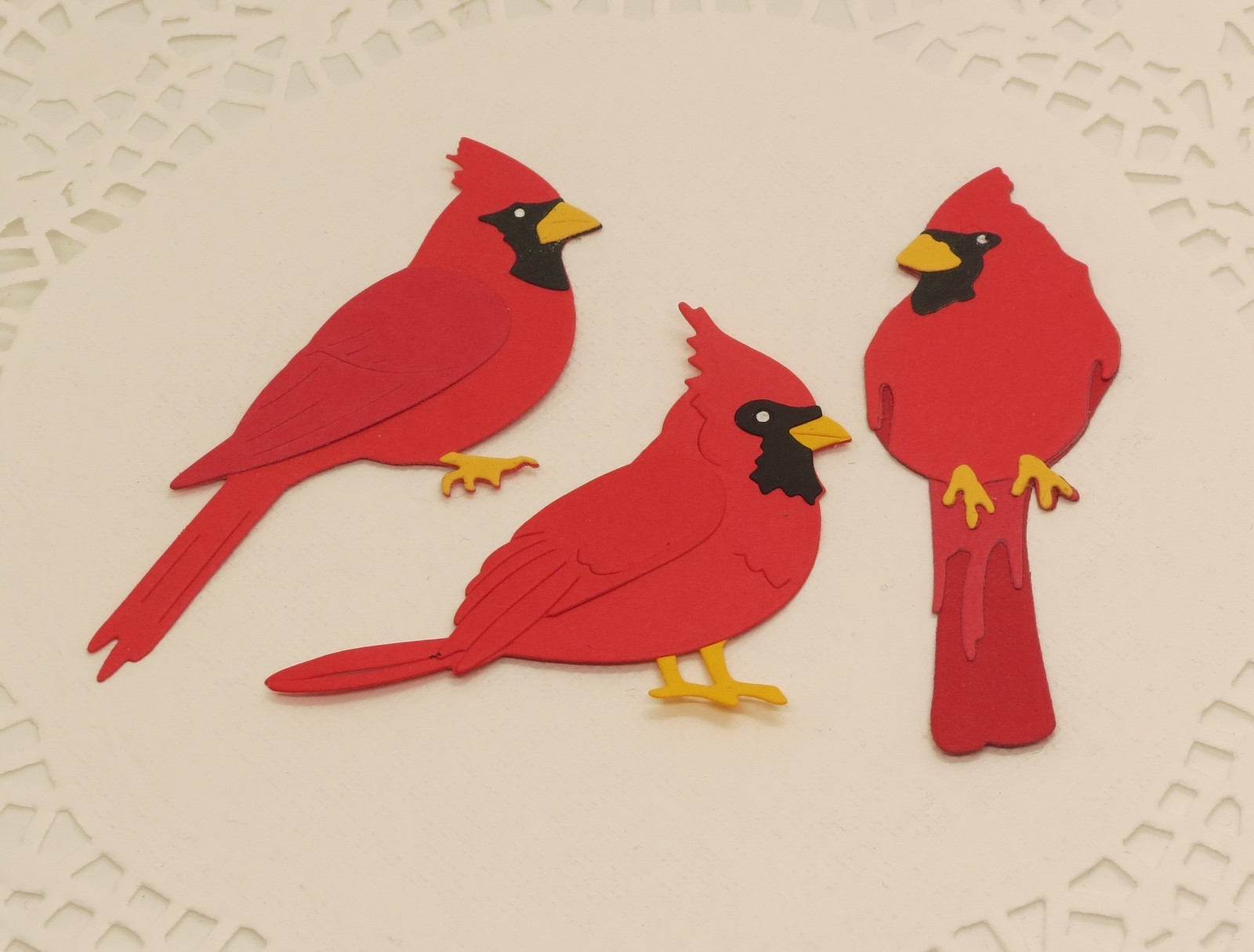 Winter Cute Bird Cardinal Christmas Die Cut Paper Scrapbook Embellishment 3 pcs