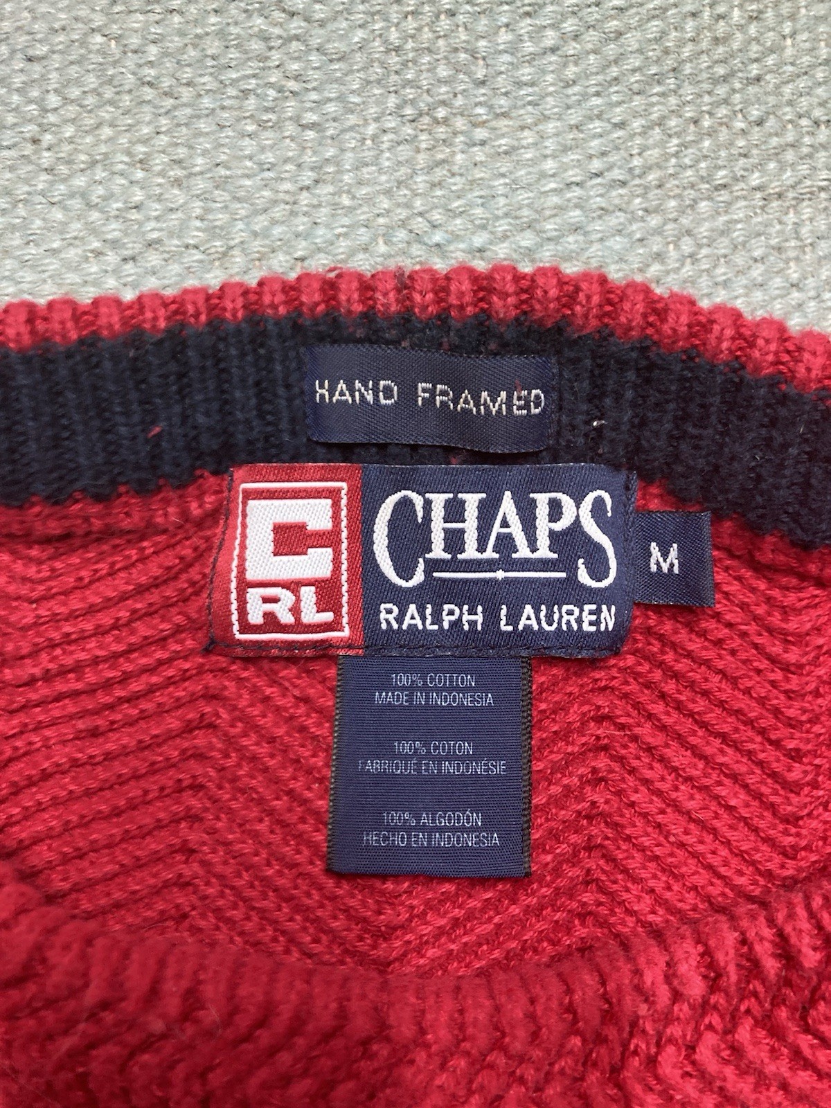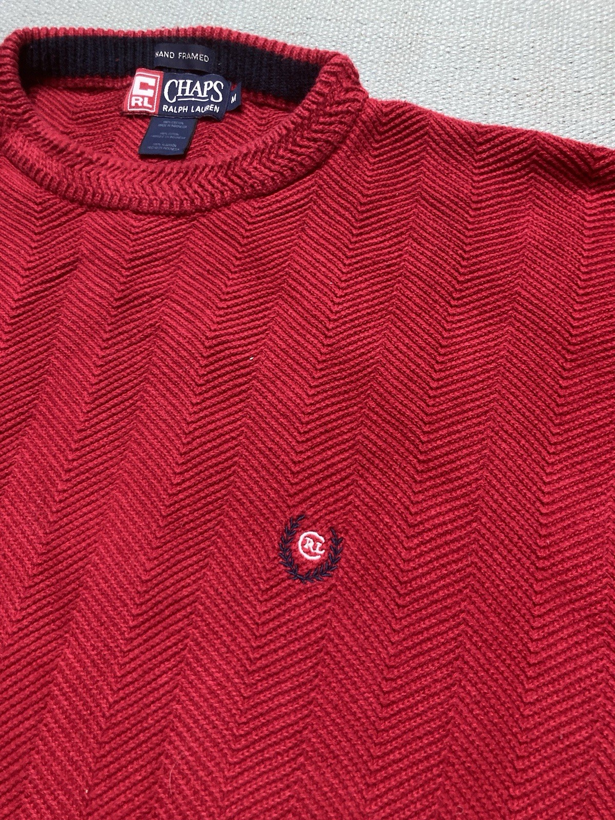 как выглядит Vintage chaps Ralph Lauren knit sweater hand framed cotton herringbone medium фото