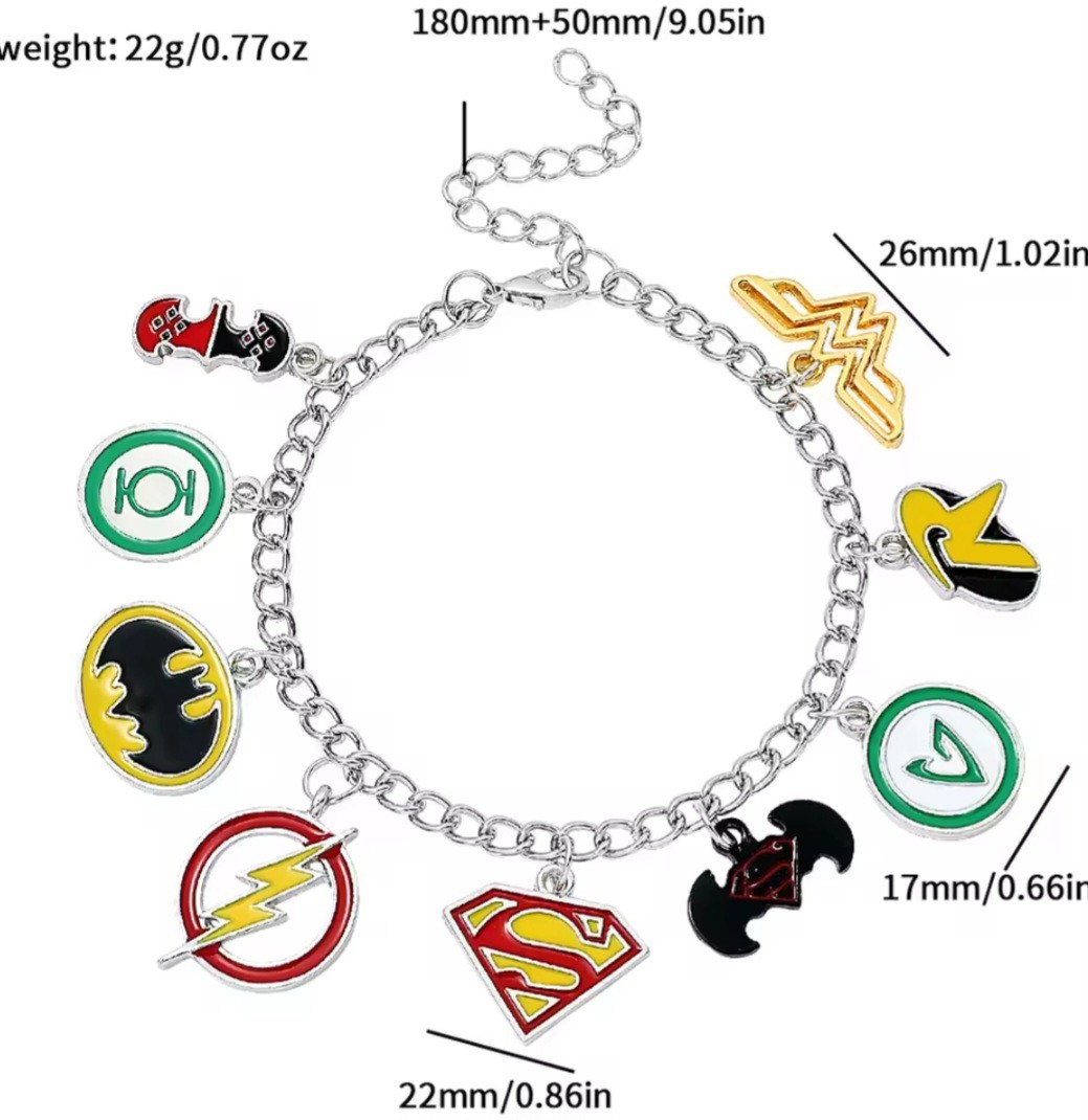 DC Justice League Charm Bracelet Multi Charms 6-8 Inches Adjustable Extension
