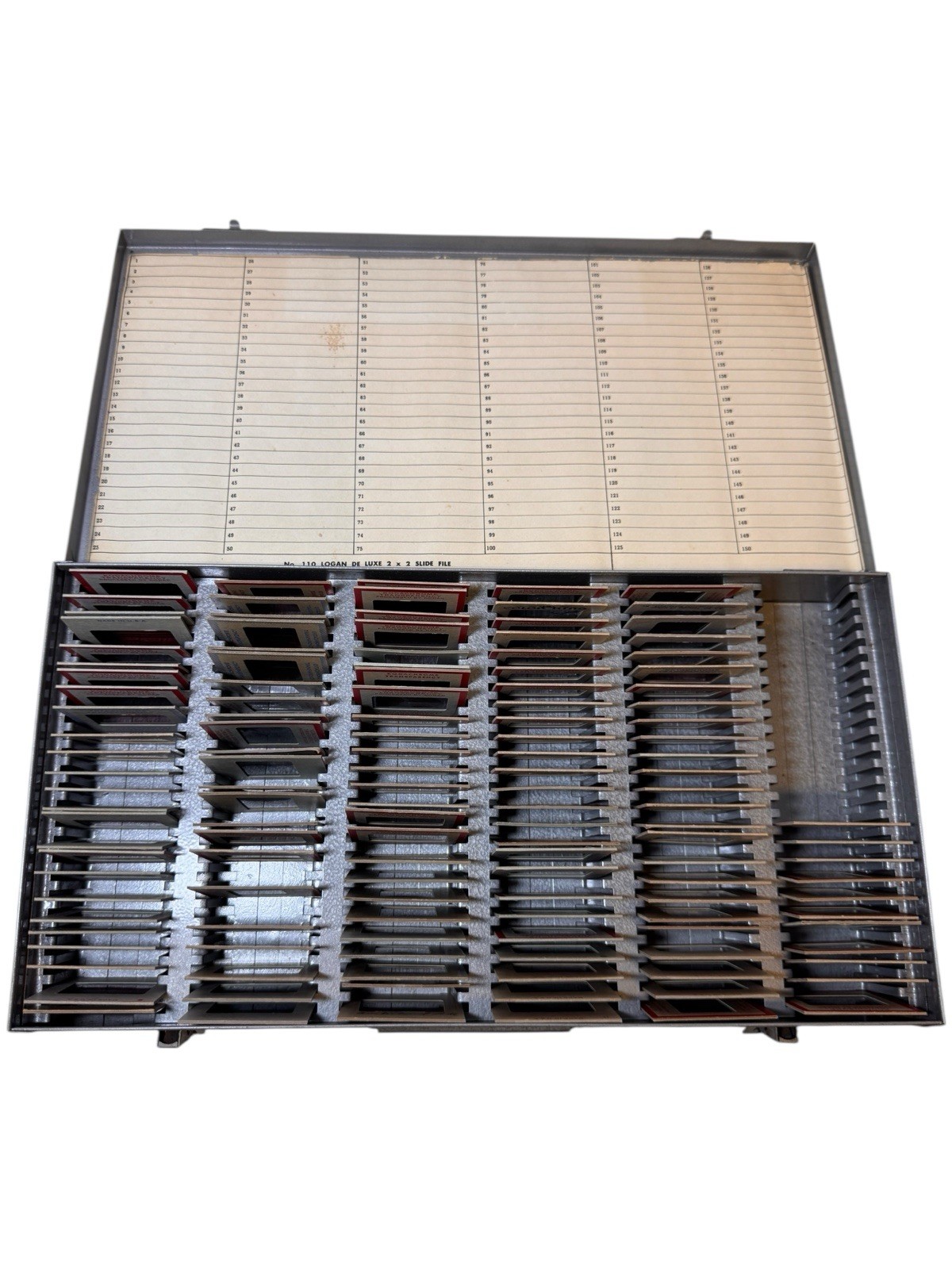 Vintage Atco Metal Slide Storage Box Case Holds 150 35mm Slides W/ 134 Slides