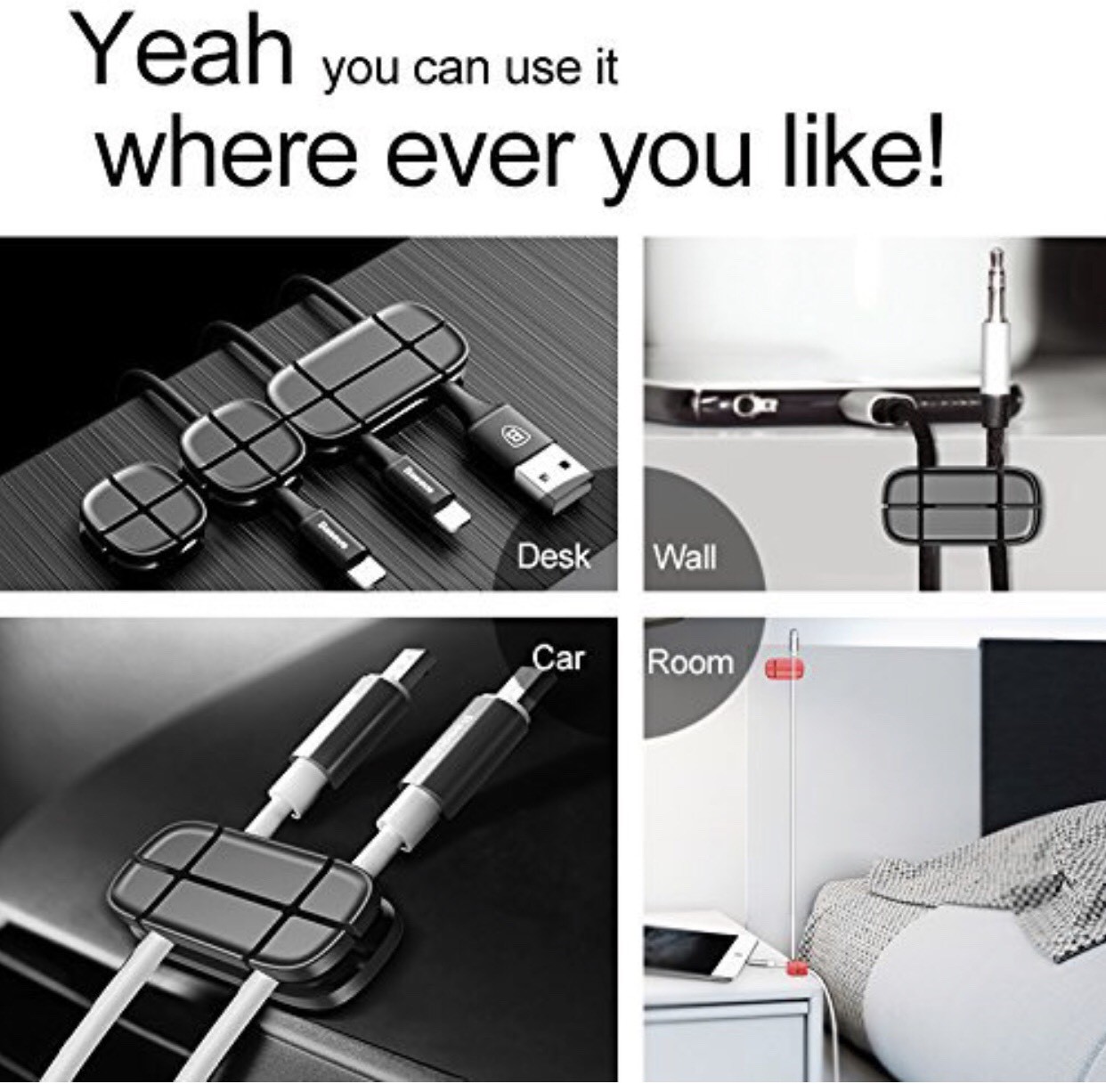 Silicone Cable Winder Wire Organizer USB Charger Cable Heaphone Cord Holder Clip