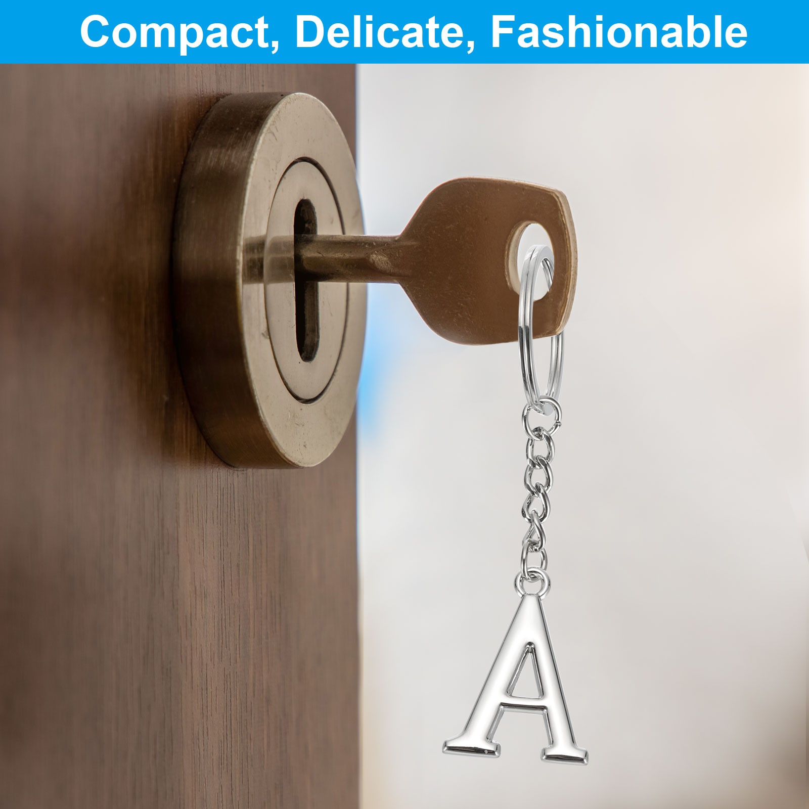 • Initial Letter Key Chain Letter a Key Chain Pendant Key Ring Silver