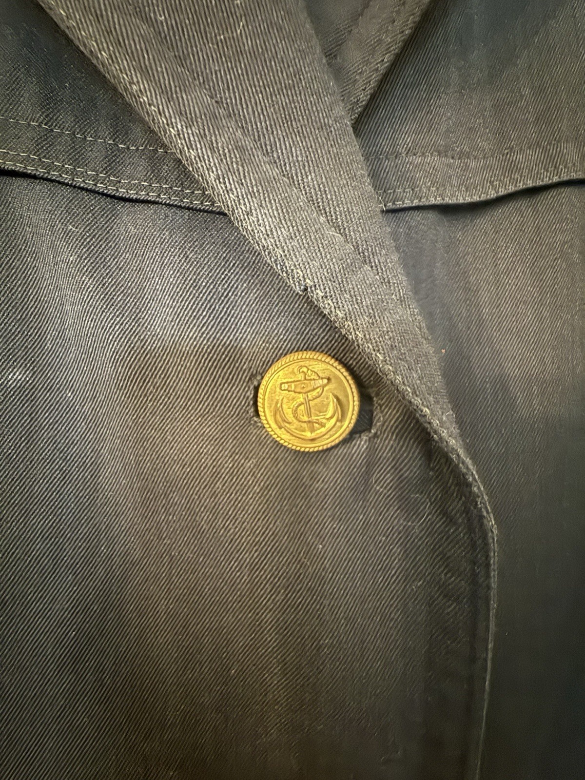как выглядит French Dark Navy Peacoat Anchor Sleeve Detail Size Large Military Vintage фото