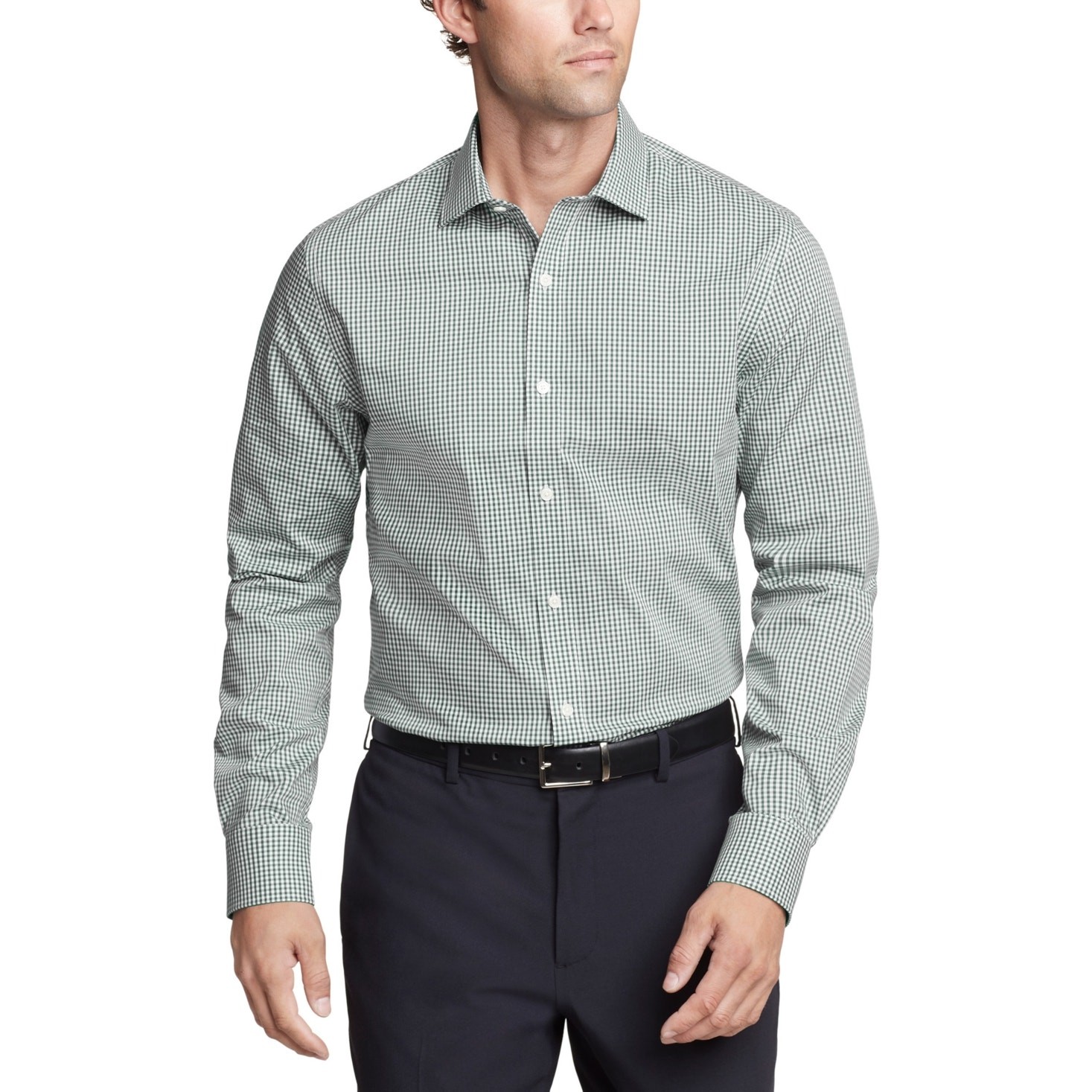 как выглядит Tommy Hilfiger Mens Flex Slim Wrinkle Free Stretch Dress Shirt green 17.5 32/33 фото