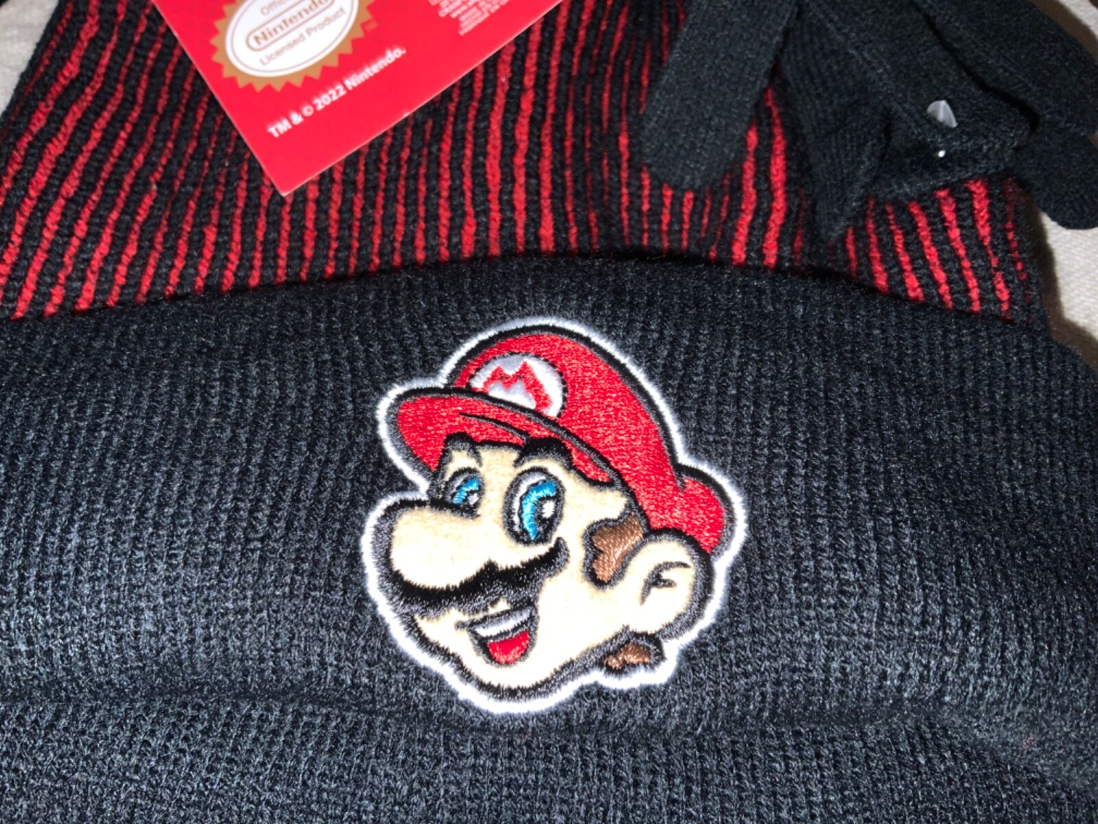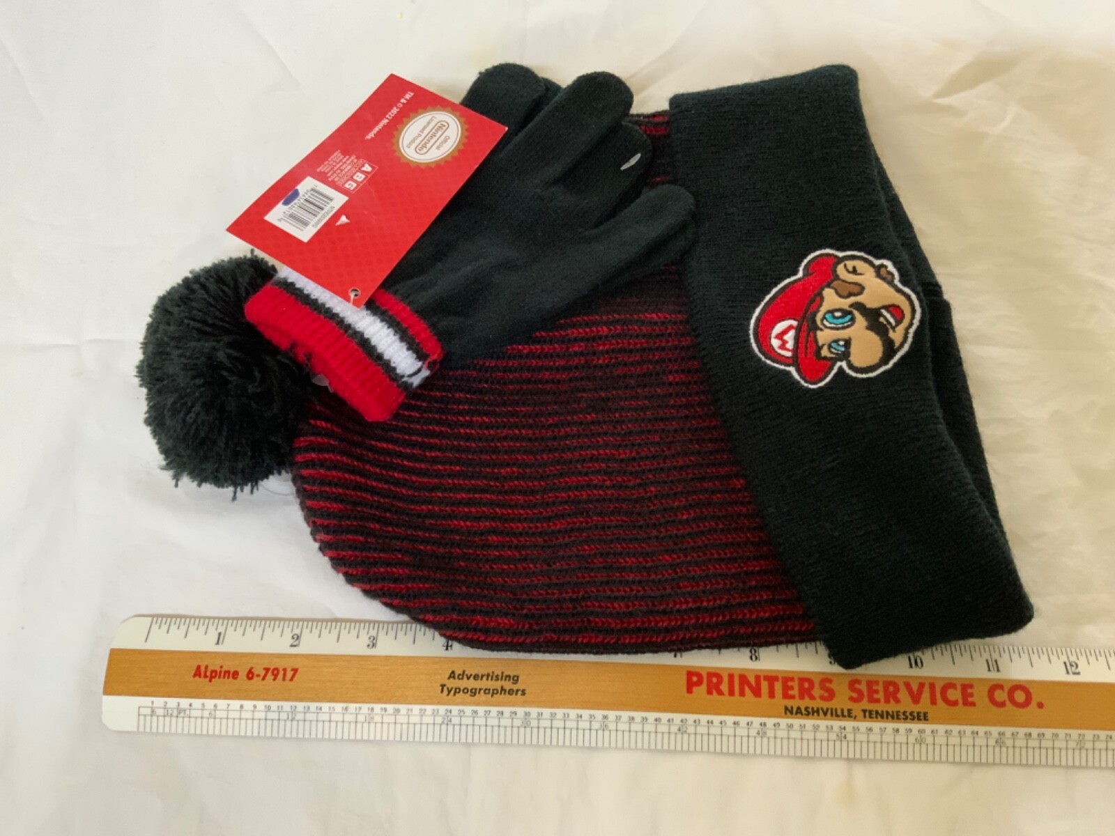 Nintendo Super Mario Boys adults Accessories Beanie hat kids Gloves Black Red