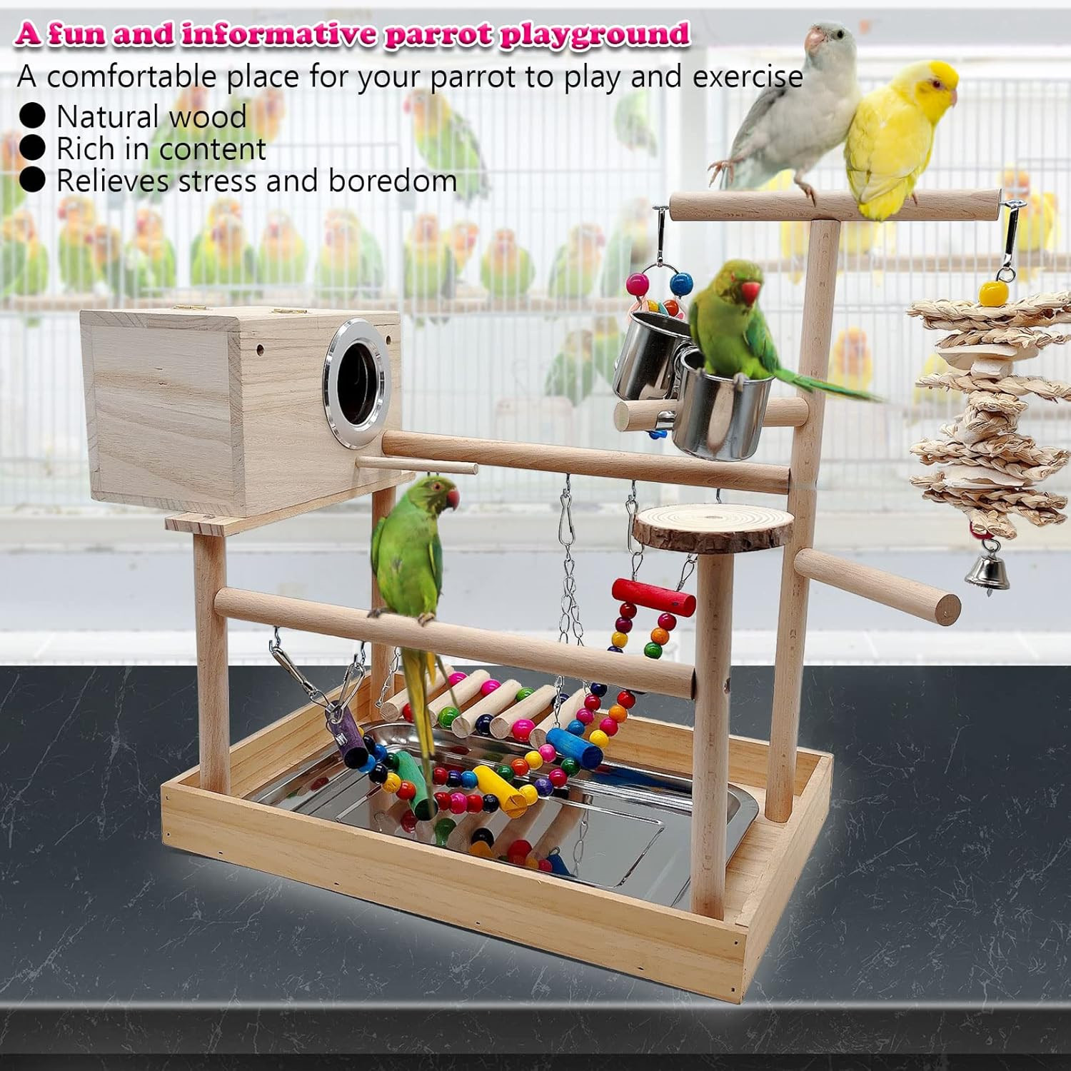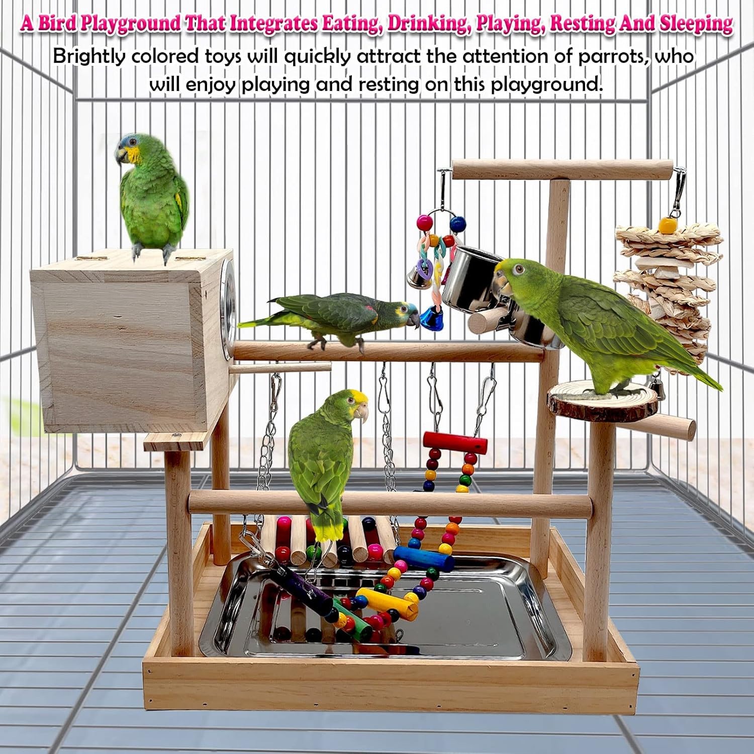 Bird Playground,Parrot Play Stand,Parakeet Play Gym with Breeding Box and Food C