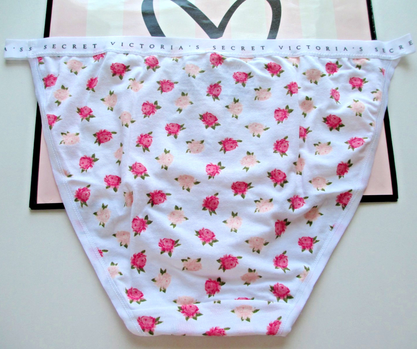 как выглядит VICTORIAS SECRET Cotton String Bikini Panty VS Floral White Pink Peony S M L XL фото