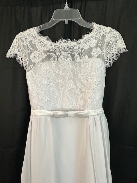 JJHouse Flower Girl/First Communion Dress, White, A-line, Lace and Chiffon, S 16
