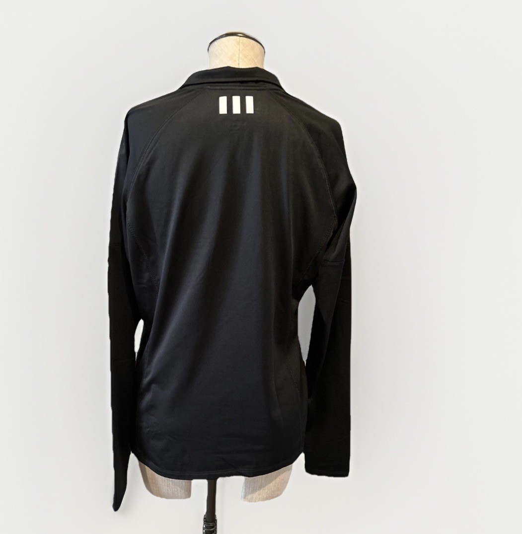как выглядит Adidas Golf 1/4 zip pullover Large L Black Long Sleeve Logo Thumb Holes Women
