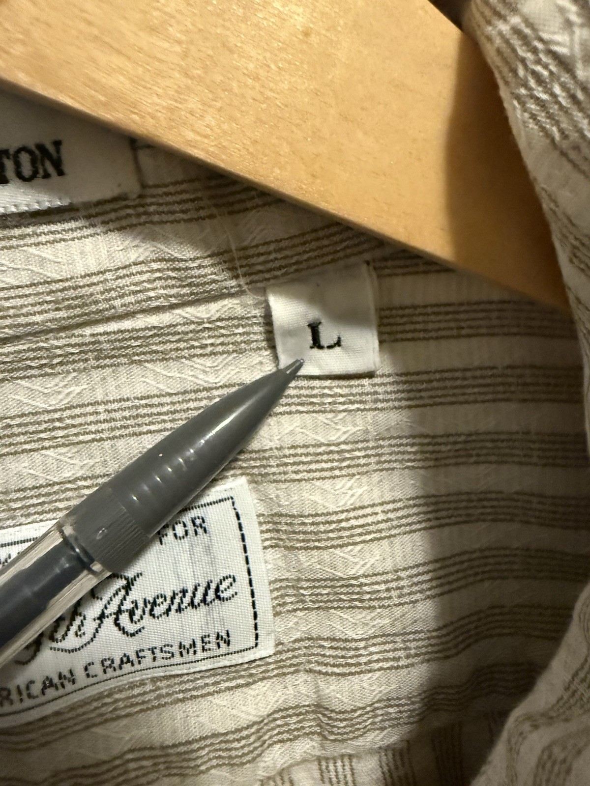 Men s Vintage Saks Fifth Avenue Shirt White Beige Stripe Sz L GREAT CONDITION