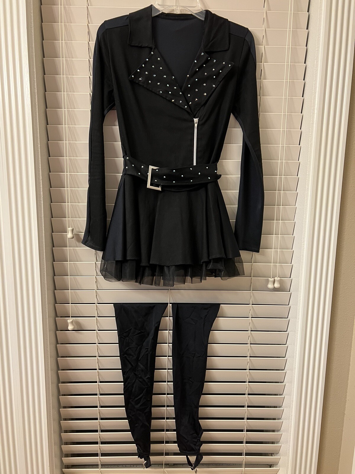 Kell Dance Costume Black Belt Adult Small: Dress, Shorts, Leg Pieces