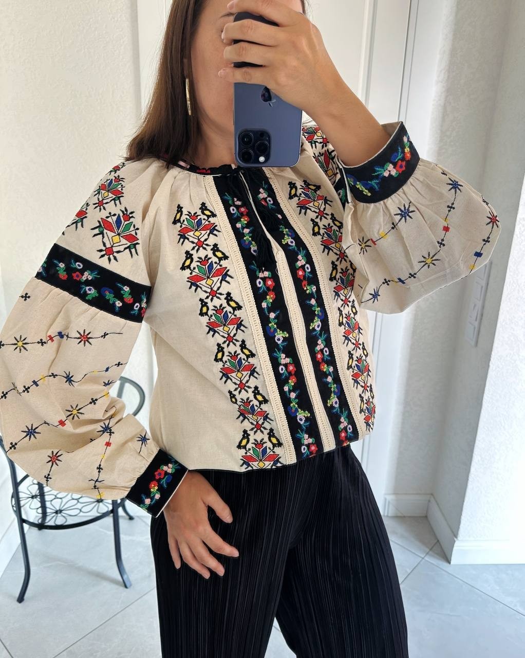 Ukrainian vyshyvanka, Beige embroidered women blouse, Women shirt embroidery S-L
