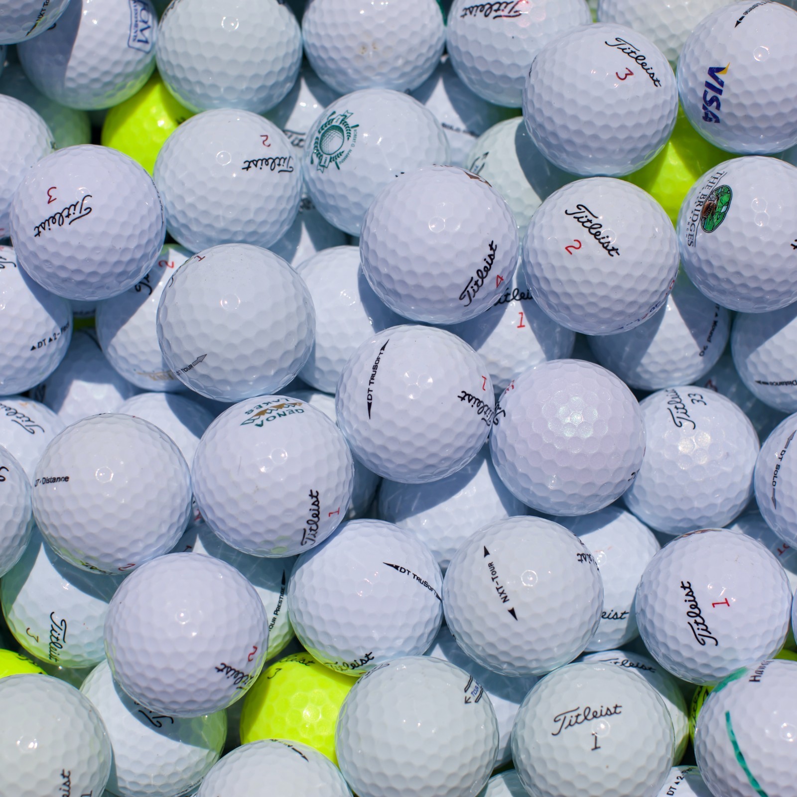 как выглядит 50 Titleist Assorted Used Golf Balls Near Mint 5A/4A Great Value - FREE SHIPPING фото