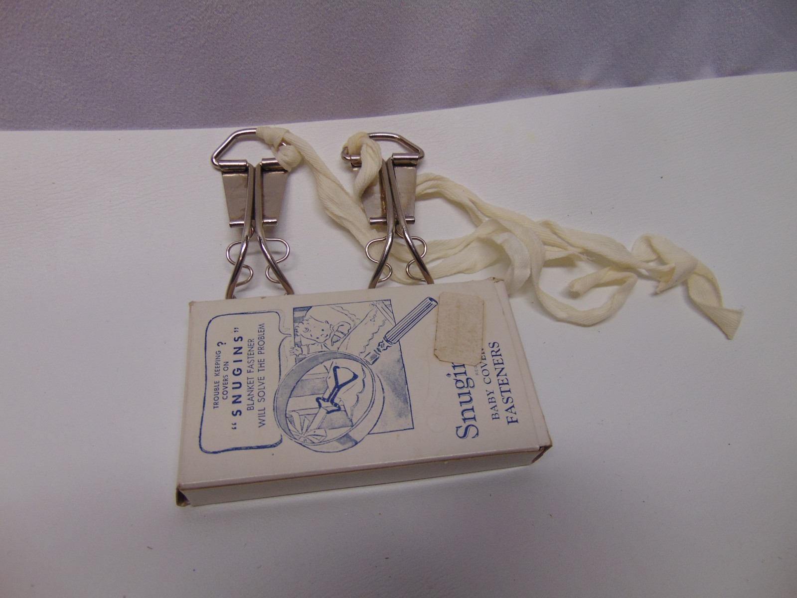 Pair of Vintage Snugins Universal Cover Fasteners 1930s Baby Blanket with Box