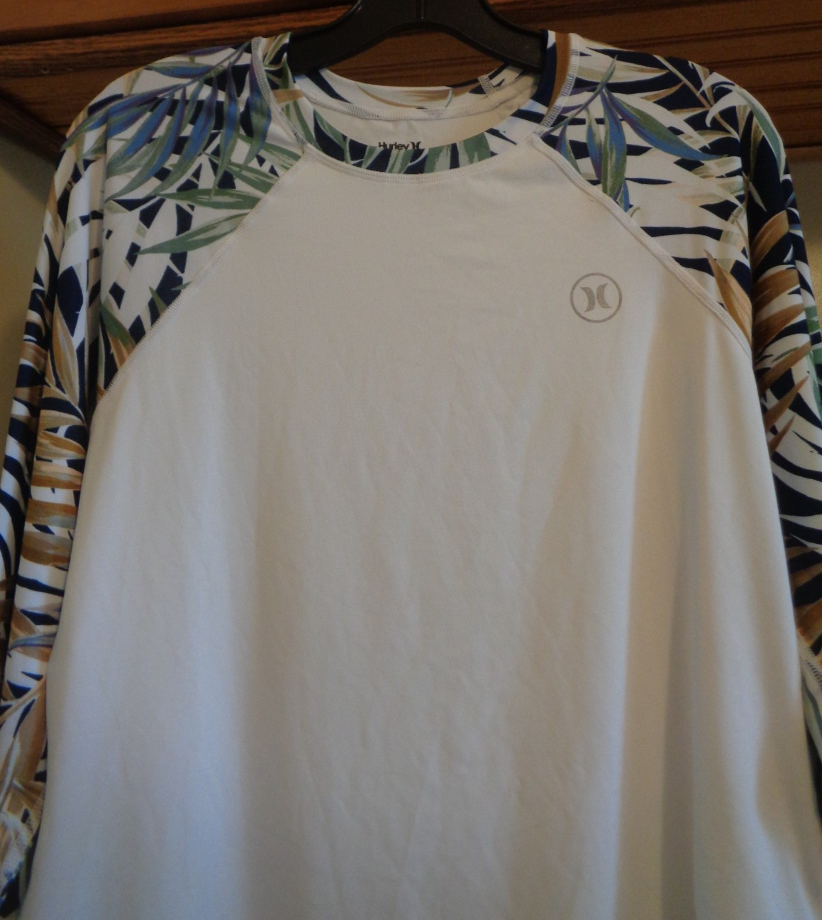 как выглядит HURLEY WHITE/MULTI FLORAL LONG SLEEVE UPF50 RASH GUARD TOP NEW SZ M фото