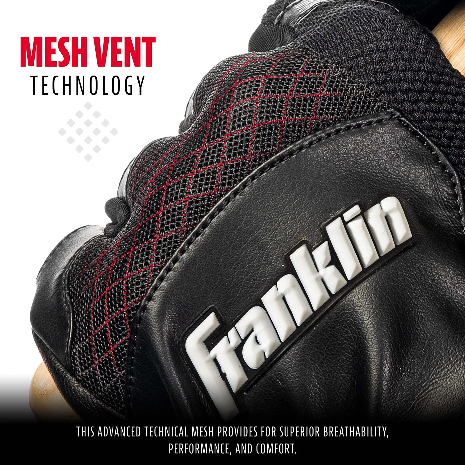 Franklin Sports Shok Sorb Adult Large Black Batting Gloves With Palm Padding