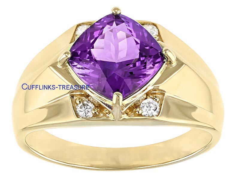 как выглядит Natural Amethyst CZ Gemstones with 925 Sterling Silver Gold Plated Ring 8997 фото