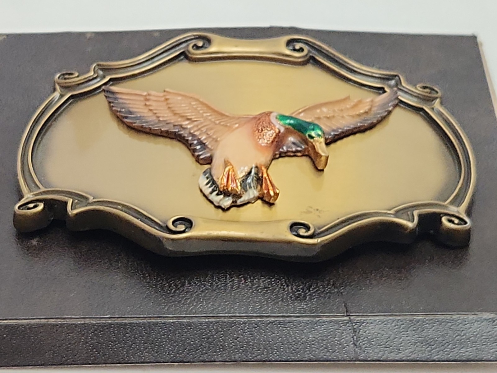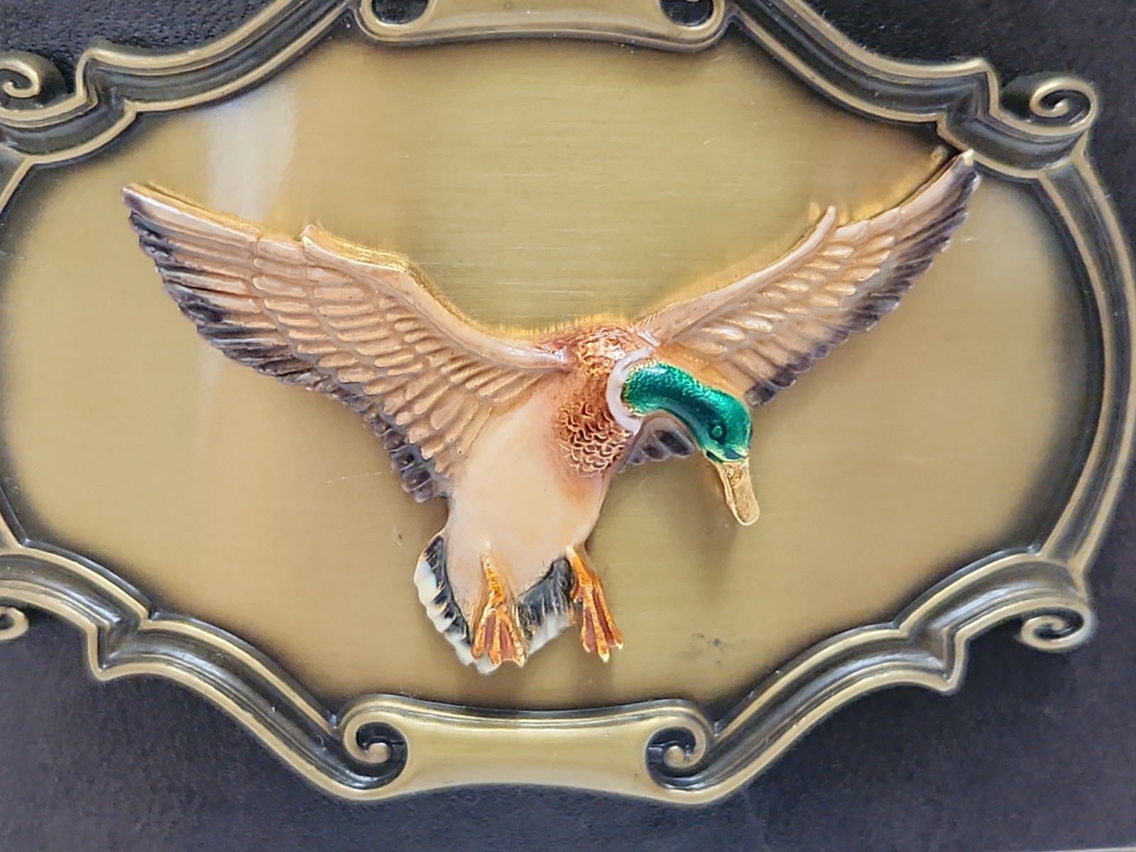 Flying Duck Belt Buckle 1980 Vintage Raintree Brass 3.5 X 2.5 Hunting Preloved