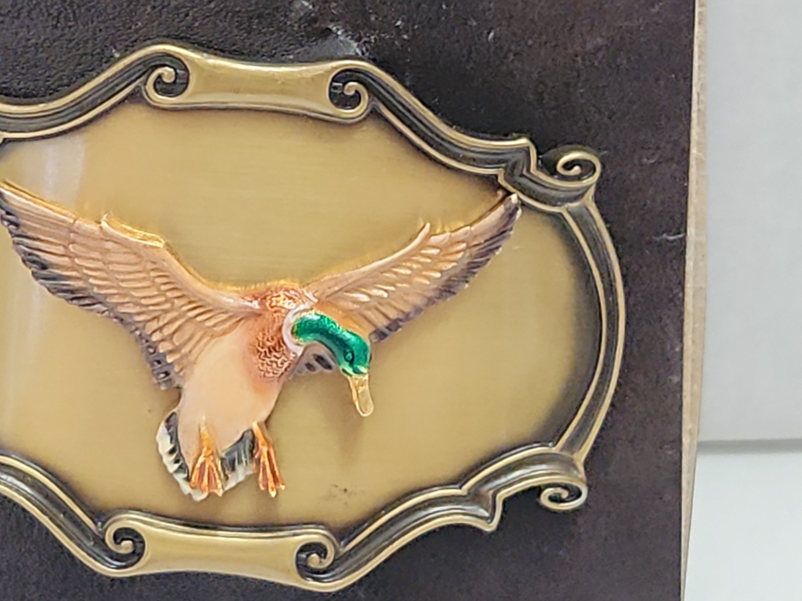 как выглядит Flying Duck Belt Buckle 1980 Vintage Raintree Brass 3.5" X 2.5" Hunting Preloved фото