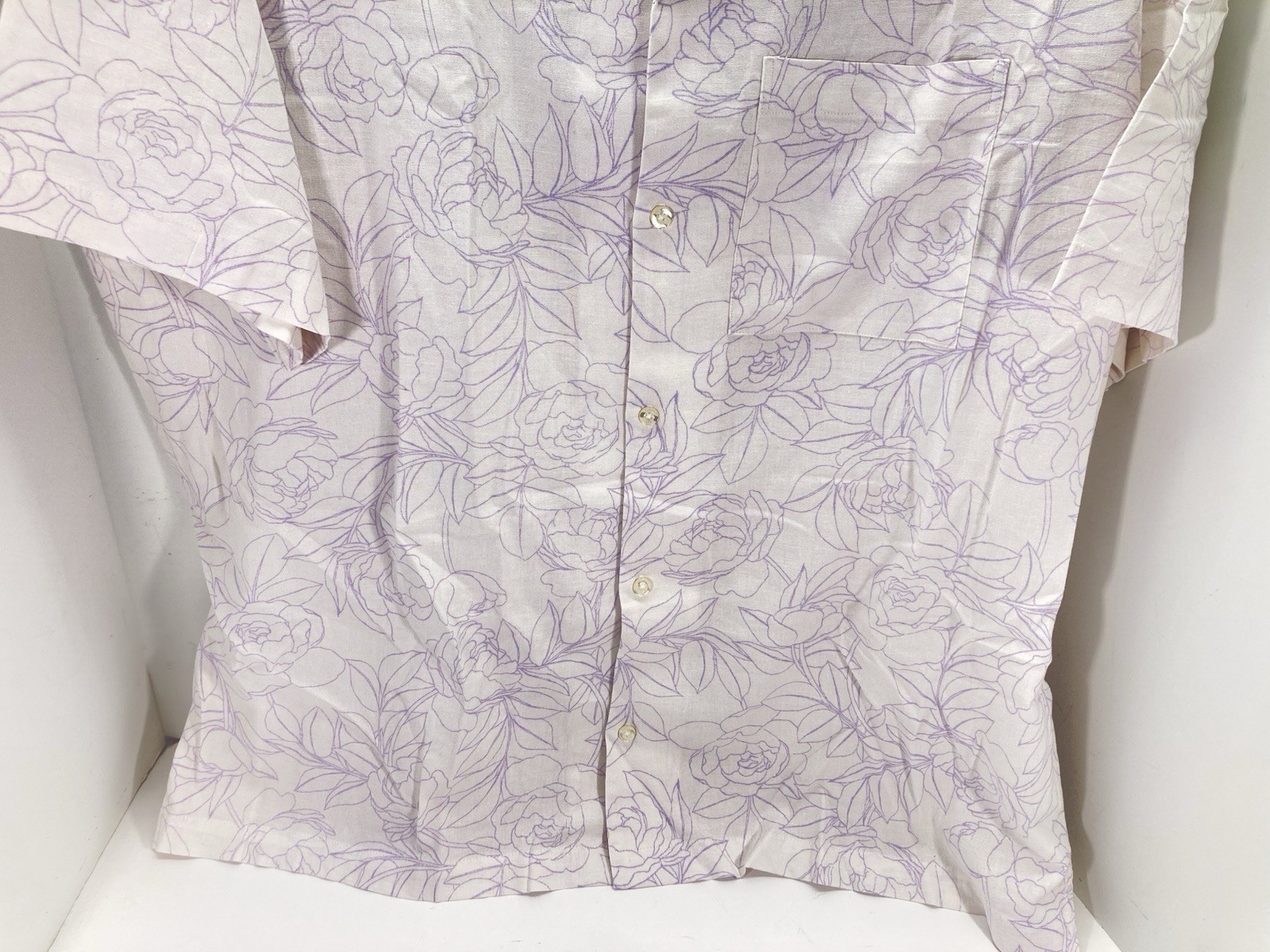 как выглядит Gap Linen Camp Shirt Men XL White Purple Floral Button Short Sleeve Casual NWT фото