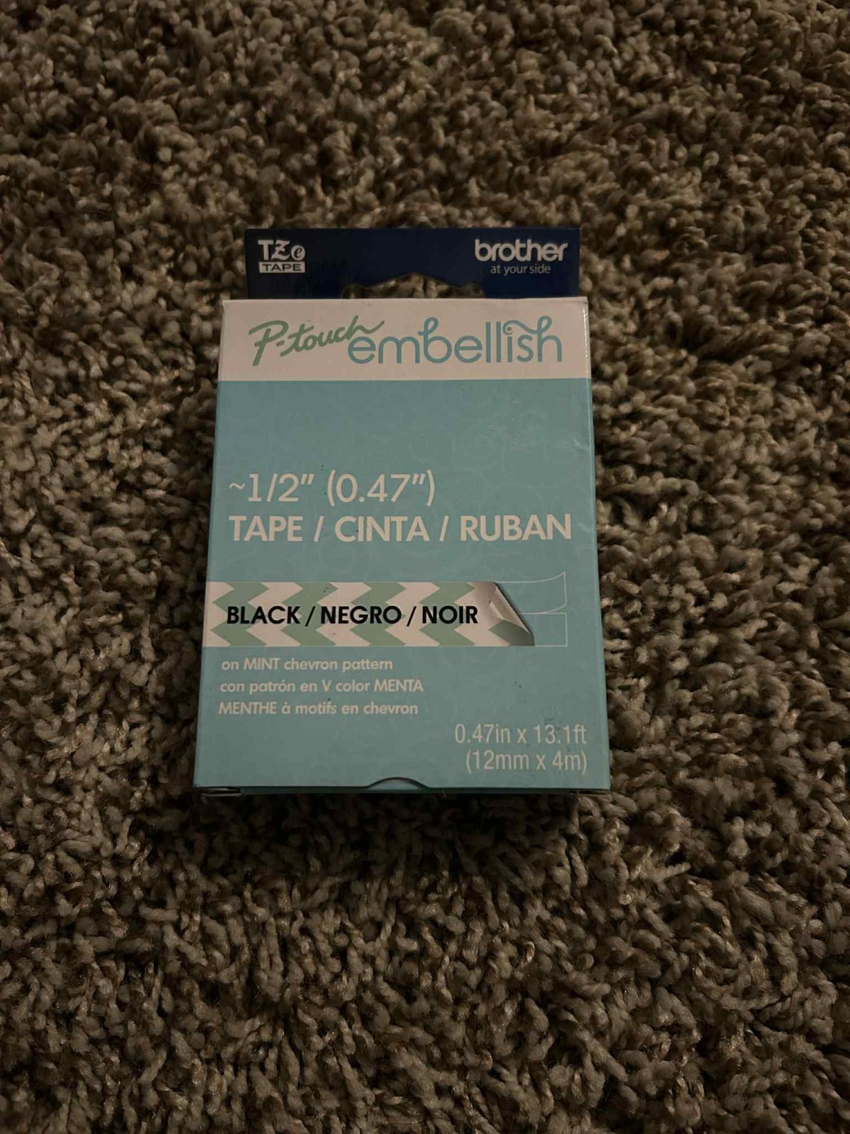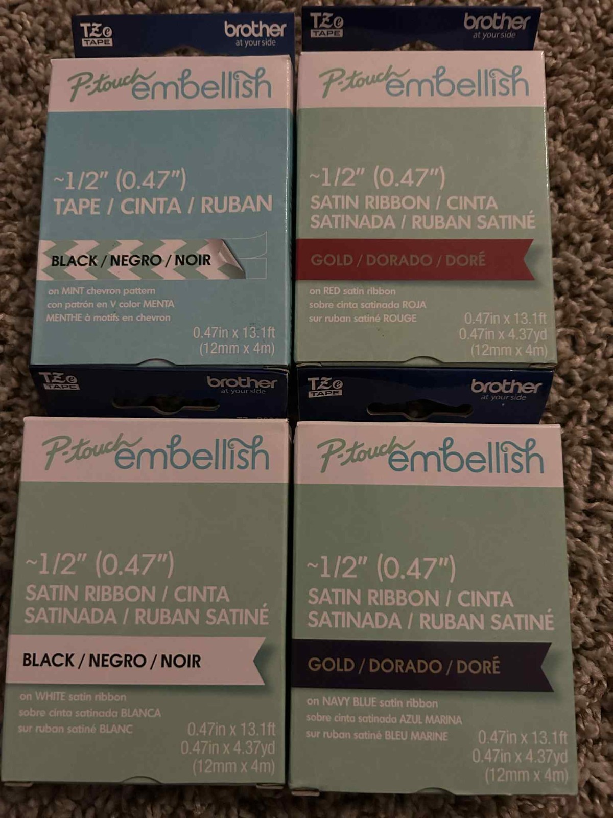 Lot 4 Brother P-touch Embellish Satin Ribbon Tape 1/2 Mint Chevron Various Gold