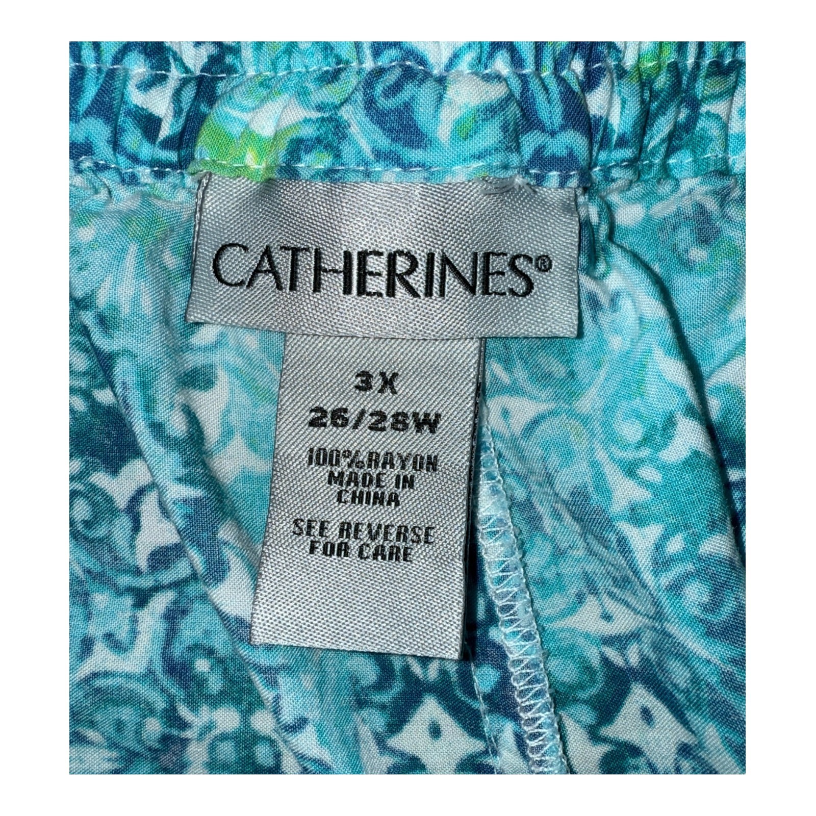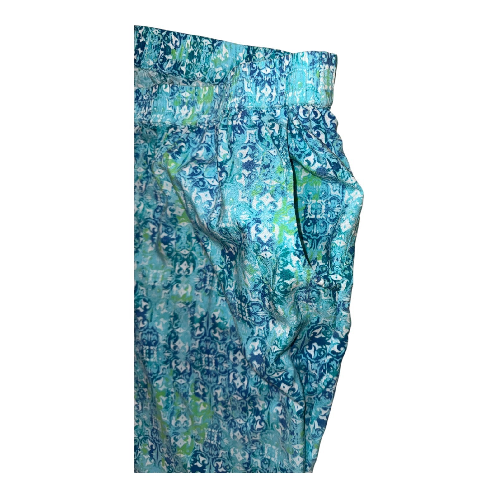 как выглядит Catherines Blue Green Pull On Elastic Waist Crop Pants Womens 3X 26/28W фото