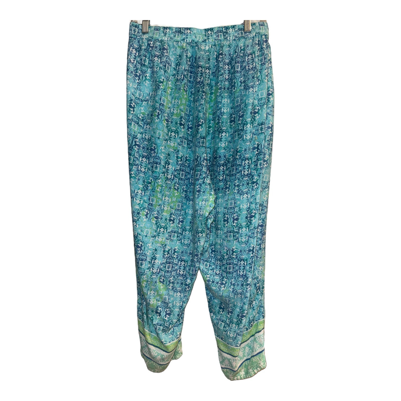 как выглядит Catherines Blue Green Pull On Elastic Waist Crop Pants Women