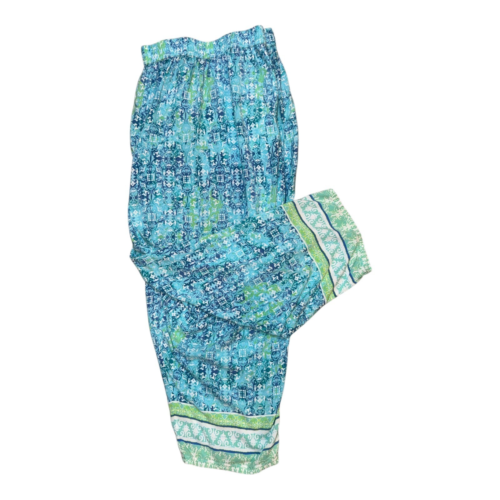 Catherines Blue Green Pull On Elastic Waist Crop Pants Women's 3X 26/28W