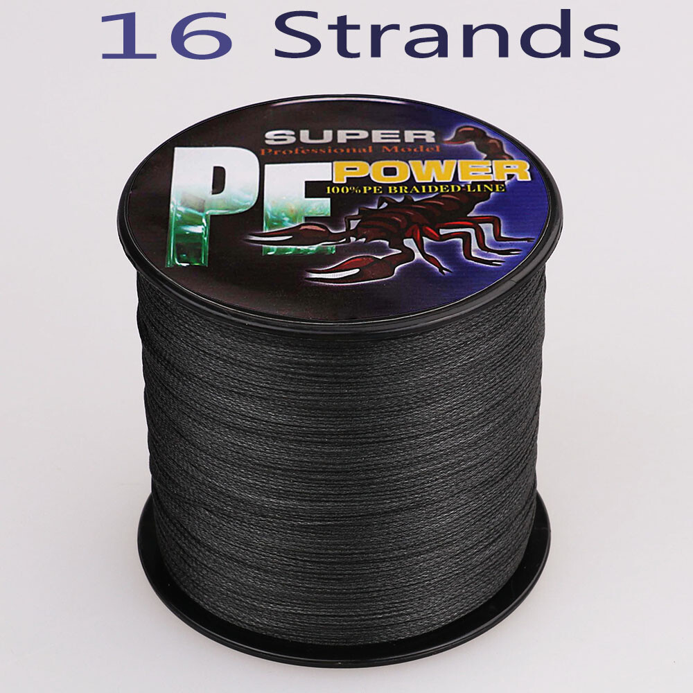 16 Strands 100m 2000m 20lbs-500lbs Black Hollow pe Dynema Braided Fishing Line