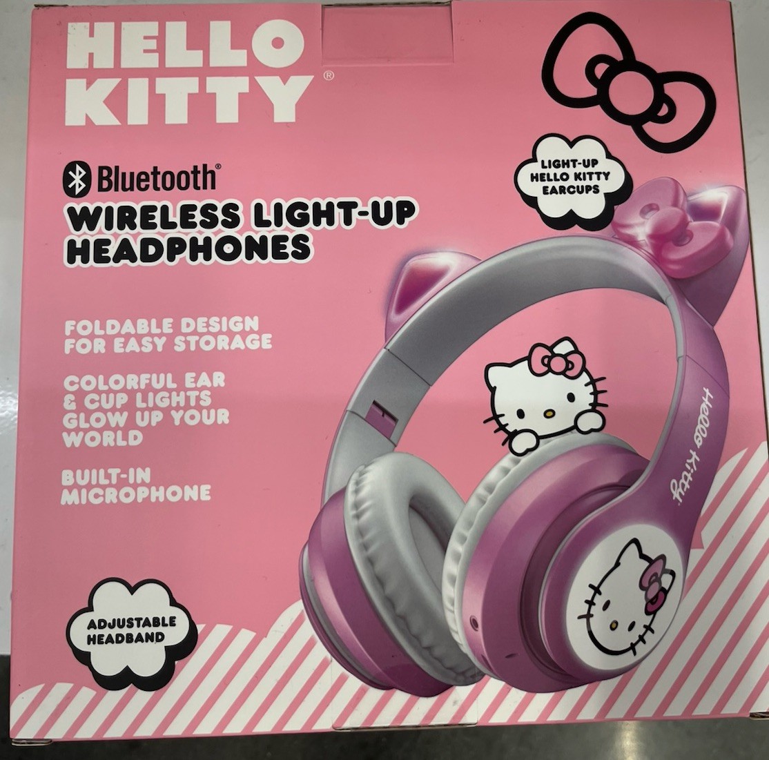 Hello Kitty Wireless Light Up Headphones Bluetooth Pink White Sanrio NEW NIB
