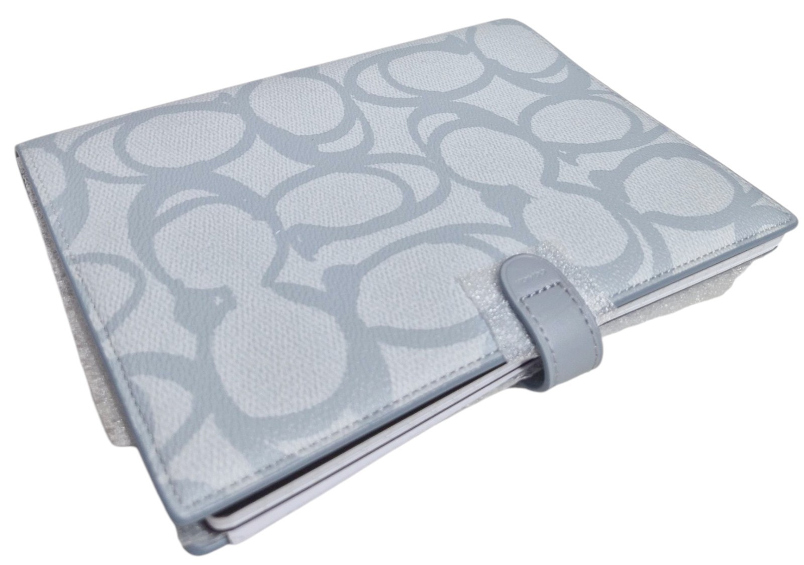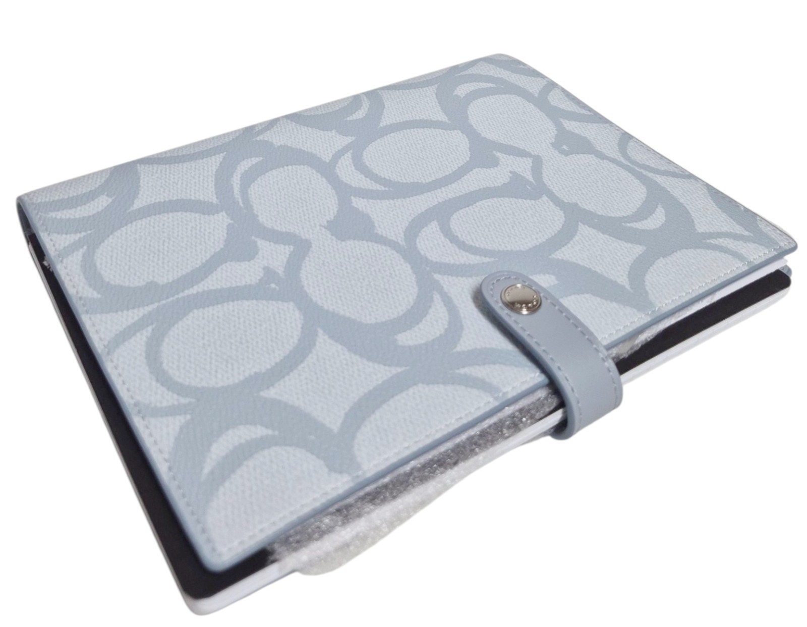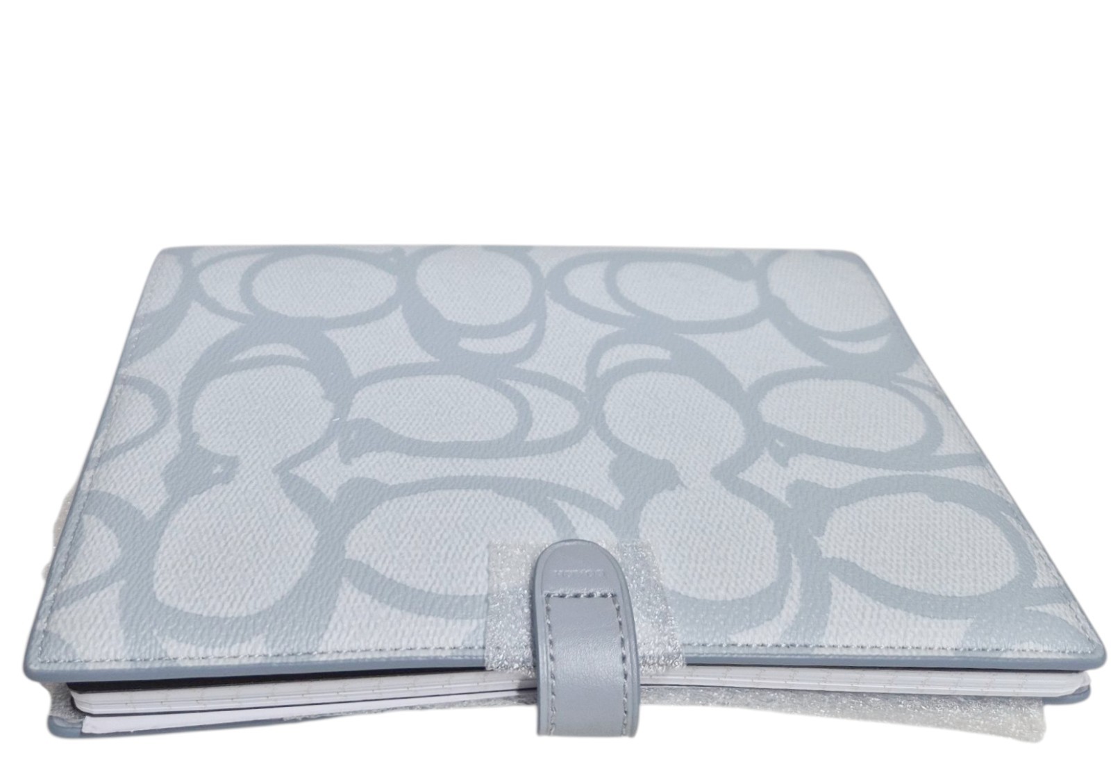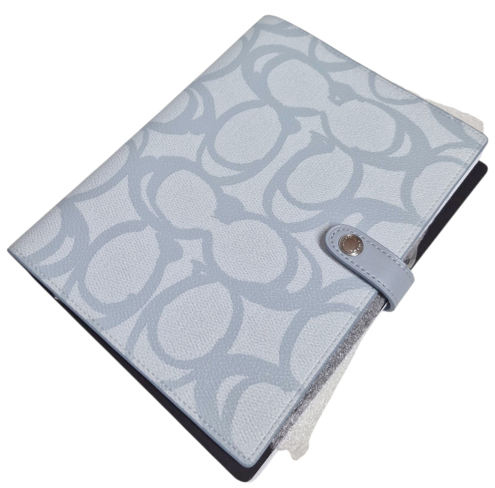 как выглядит Coach Notebook in Sketch Signature Canvas Logo Print Silver Ice Blue Leather NWT фото