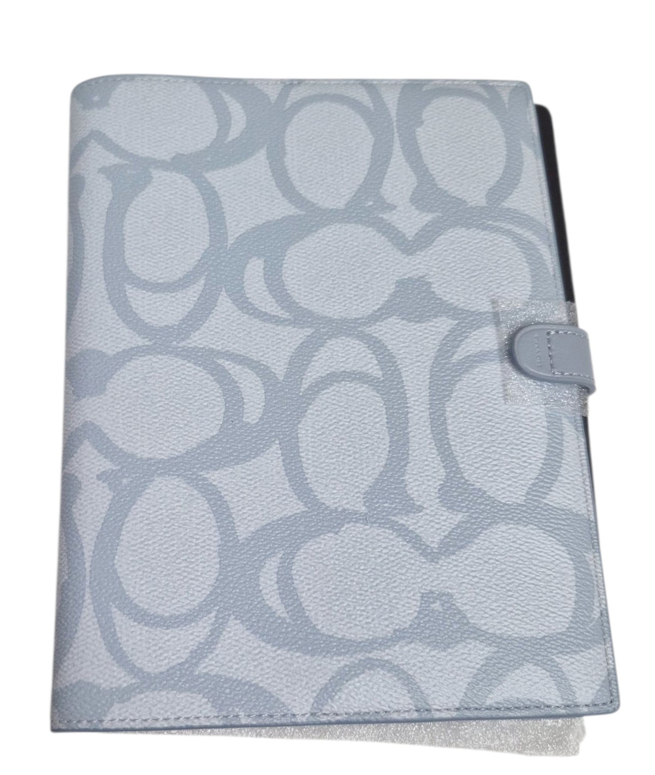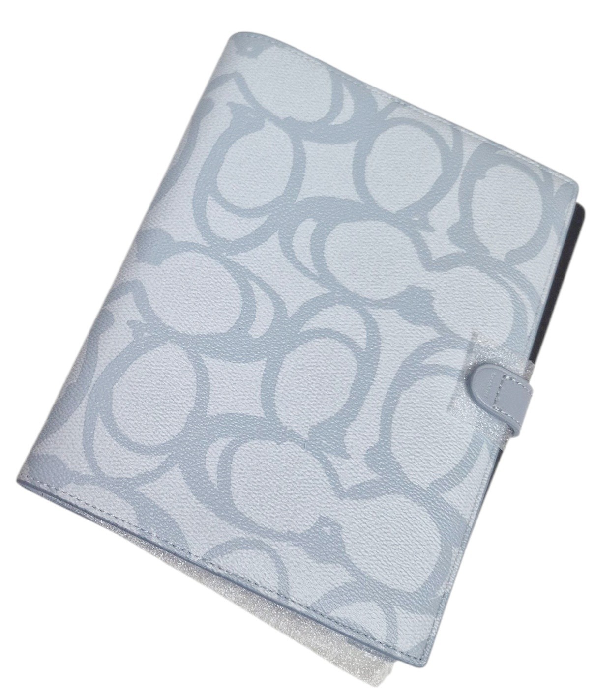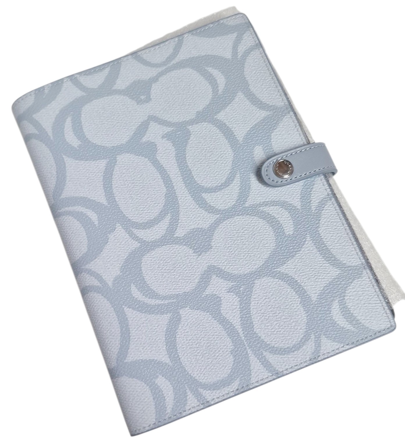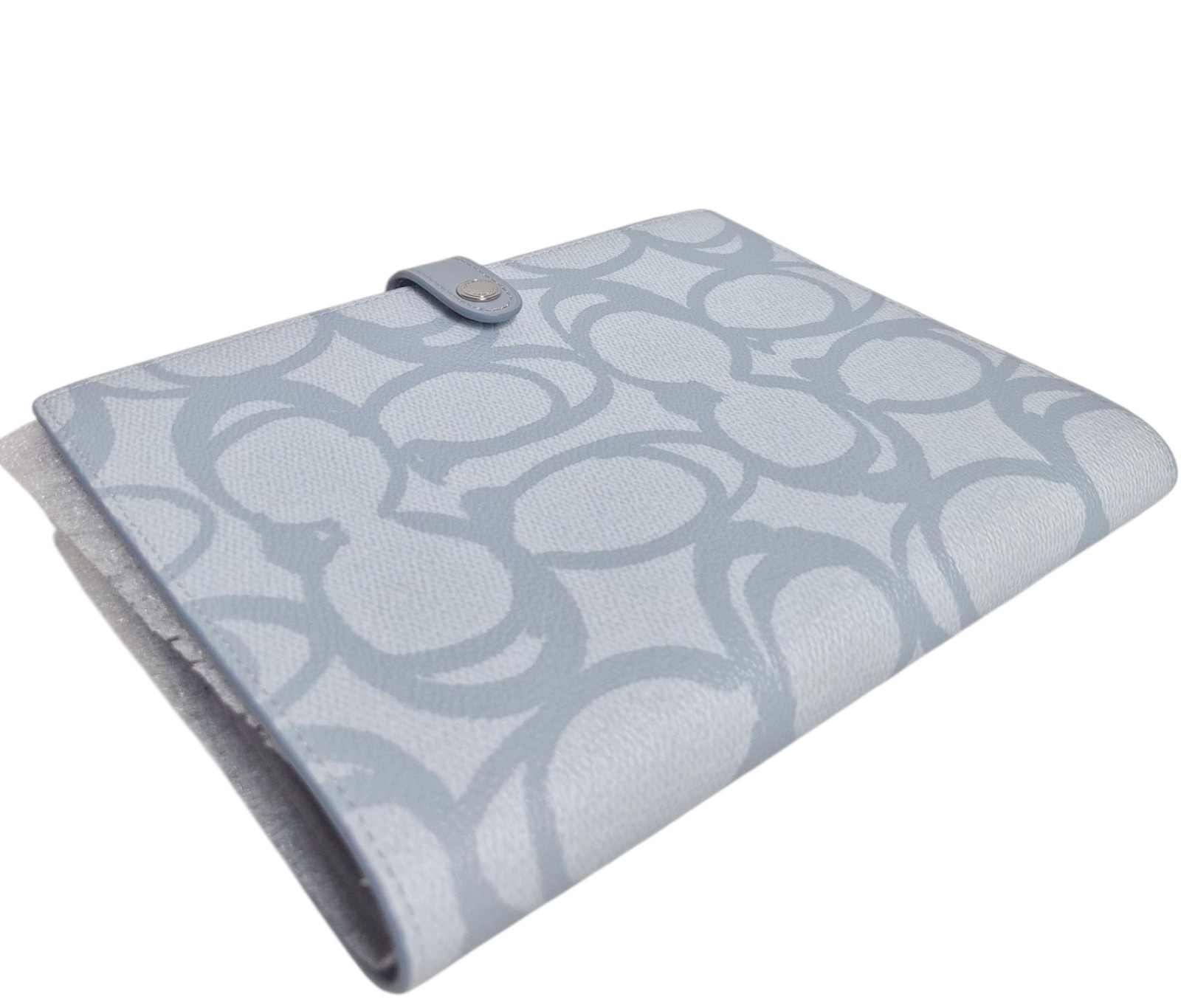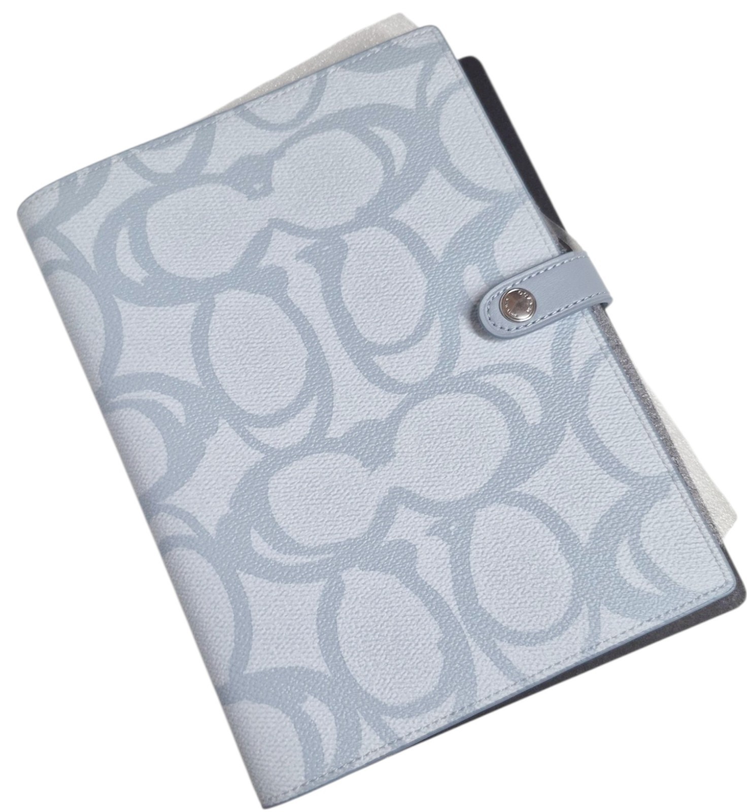 как выглядит Coach Notebook in Sketch Signature Canvas Logo Print Silver Ice Blue Leather NWT фото