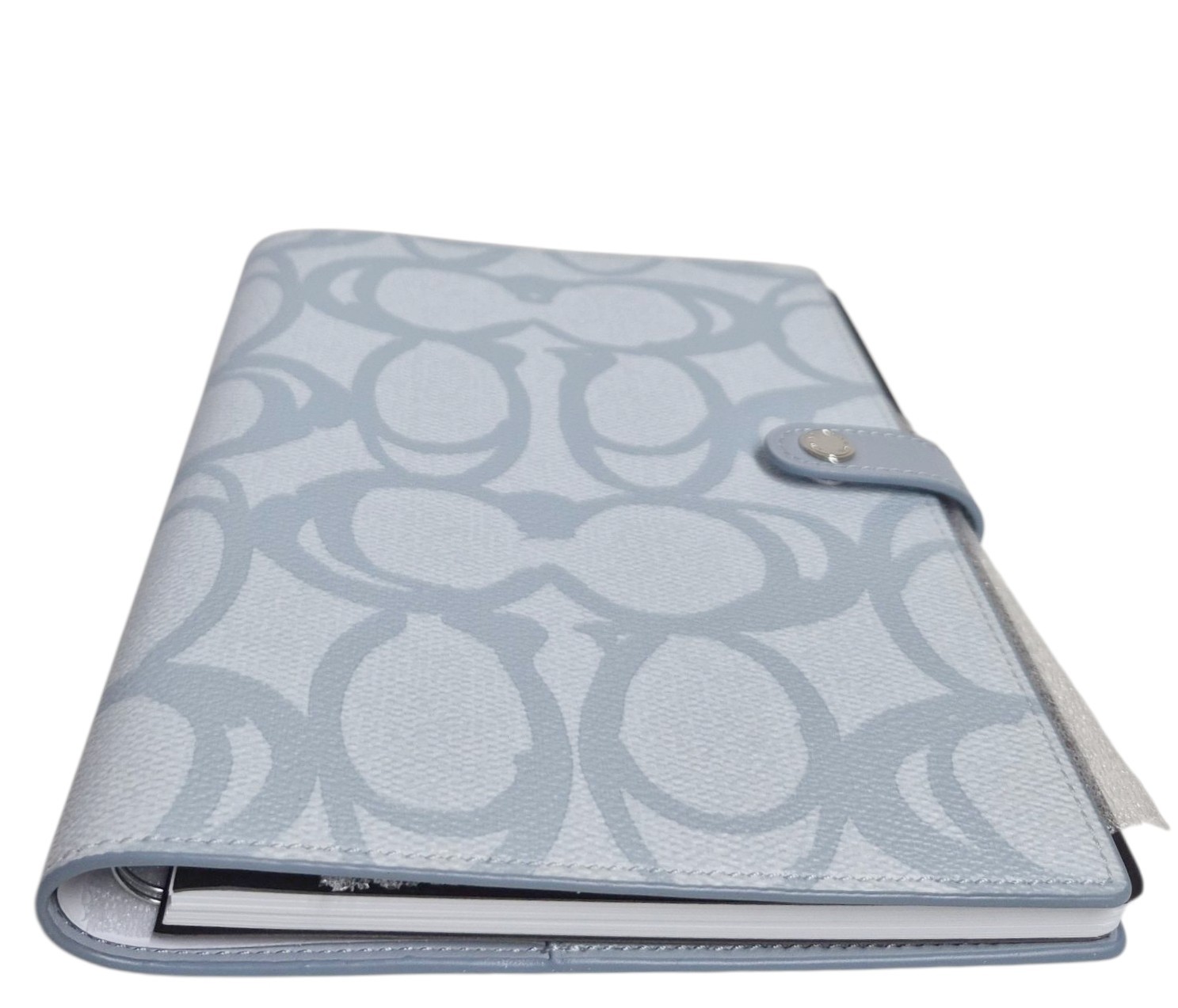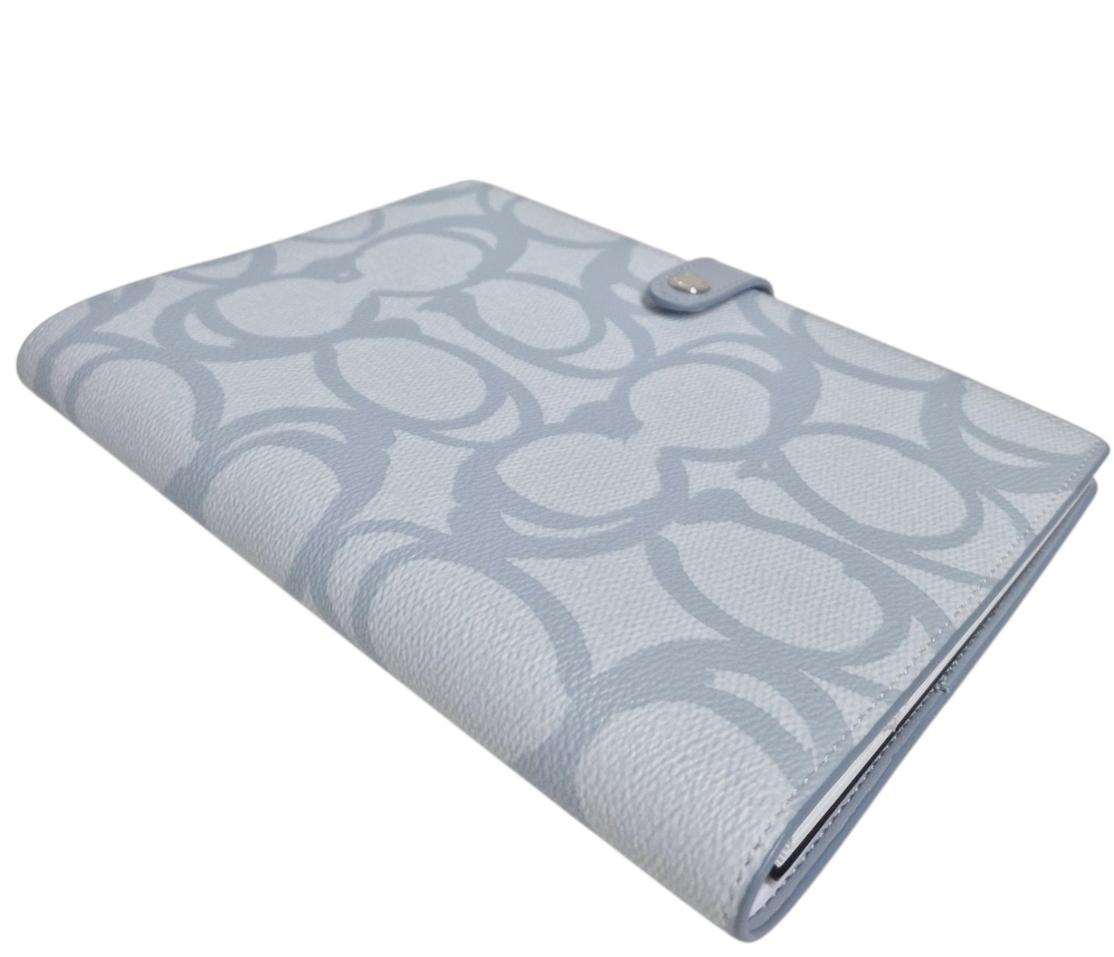 Coach Notebook in Sketch Signature Canvas Logo Print Silver Ice Blue Leather NWT