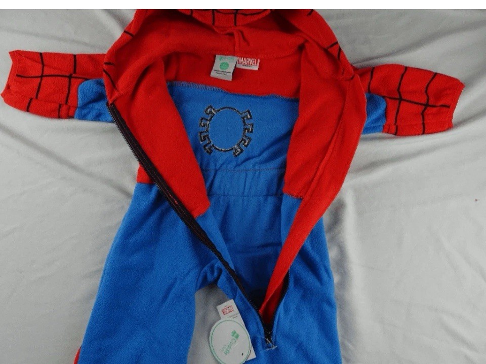 18-24 Mo Spider-Man Cuddle Pajama Hoody Fleece Plush Costume Jumpsuit Romper
