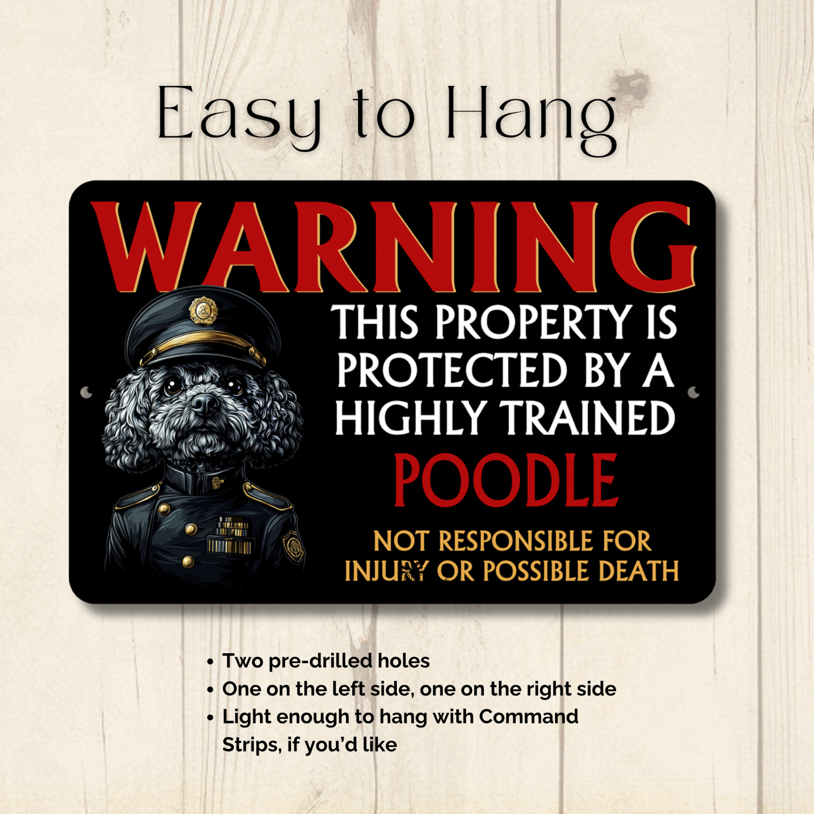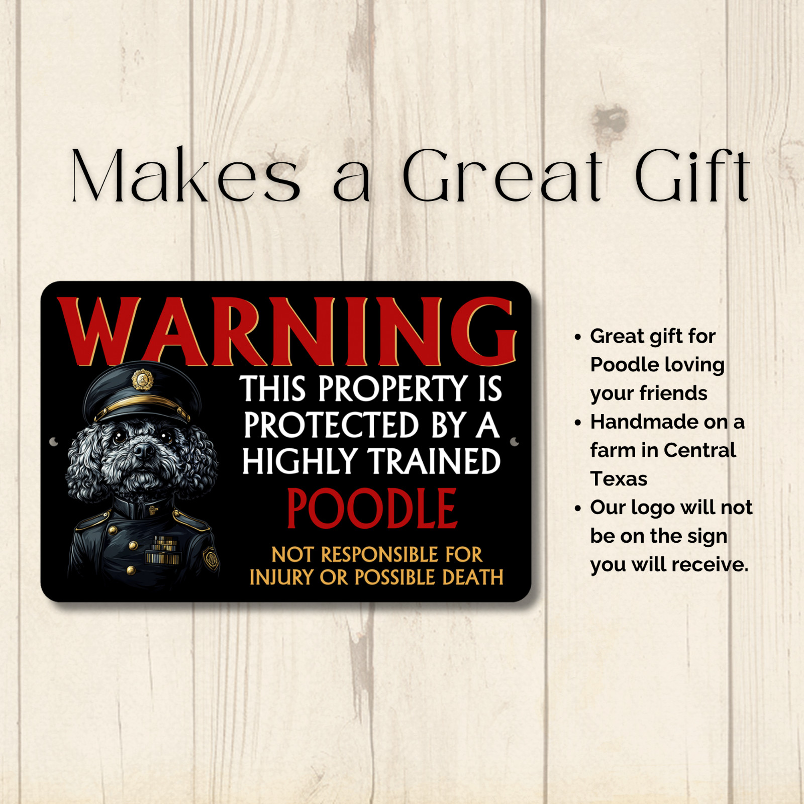 • Poodle Security Sign Warning Protected guard protection dog tin yard funny metal