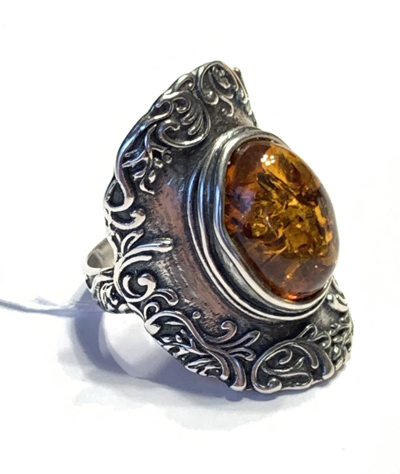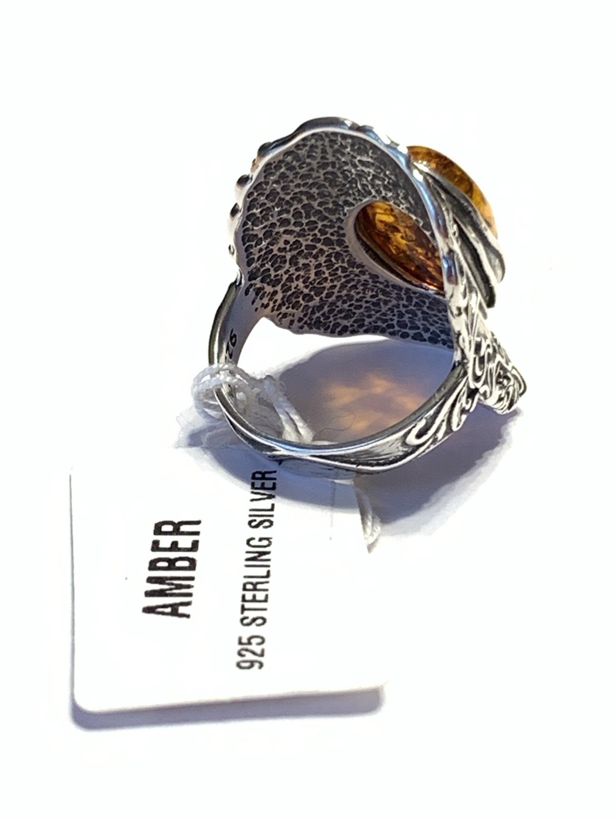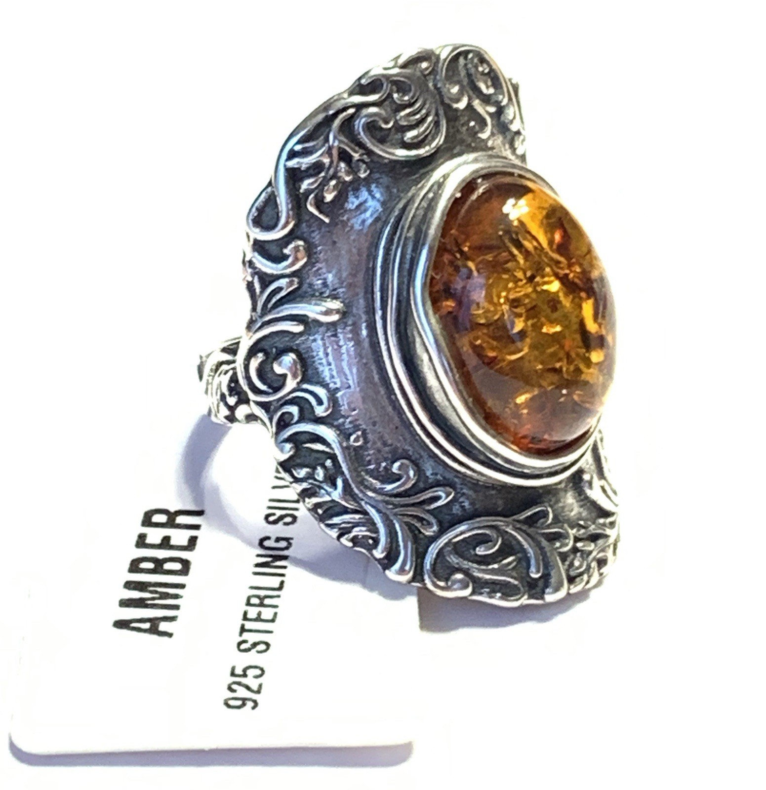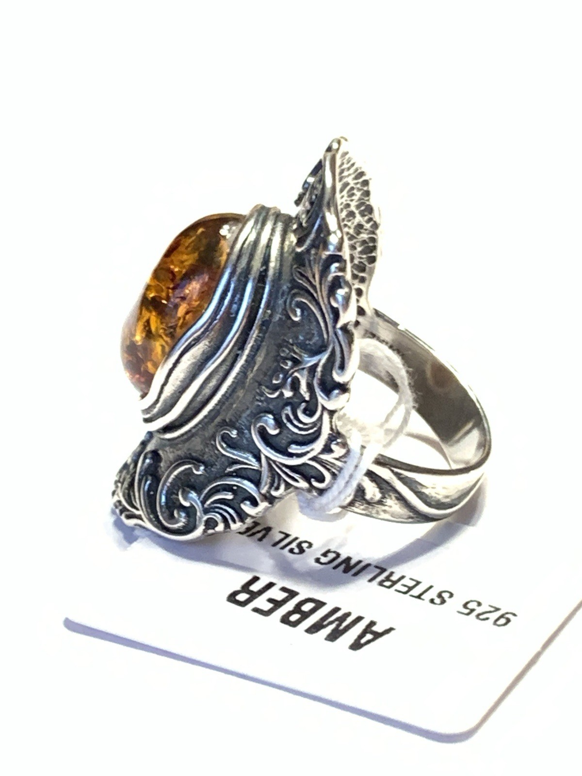 как выглядит NWOT OR PAZ STERLING SILVER 925 AMBER ELONGATED DESIGN RING SZ 8 ISRAEL PZ фото