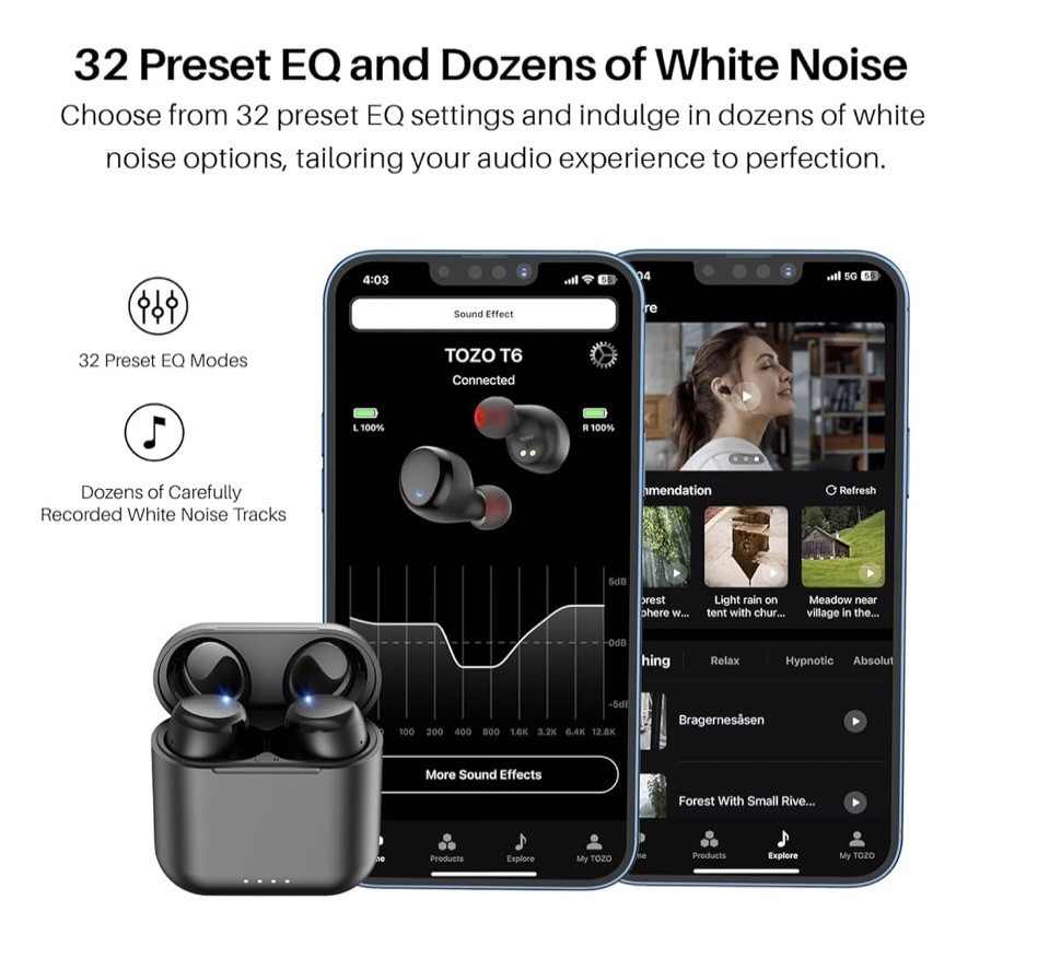 TOZO T6 Classic Version Wireless Earbuds Bluetooth5.3 Headphones Waterproof IPX8