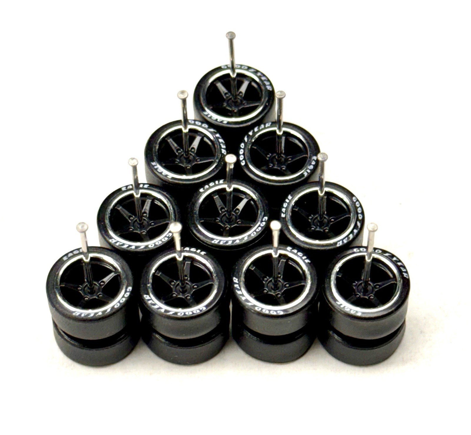 5x Sets Advan V2 11/11mm Replacement Wheels Rubber Tires for 1/64 Scale Car BLK