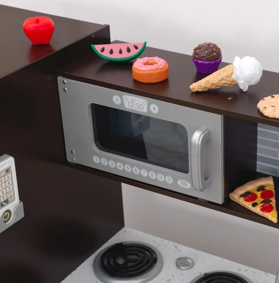 как выглядит KidKraft Uptown Espresso Wooden Play Kitchen and 30-Piece Play Food Accessories фото