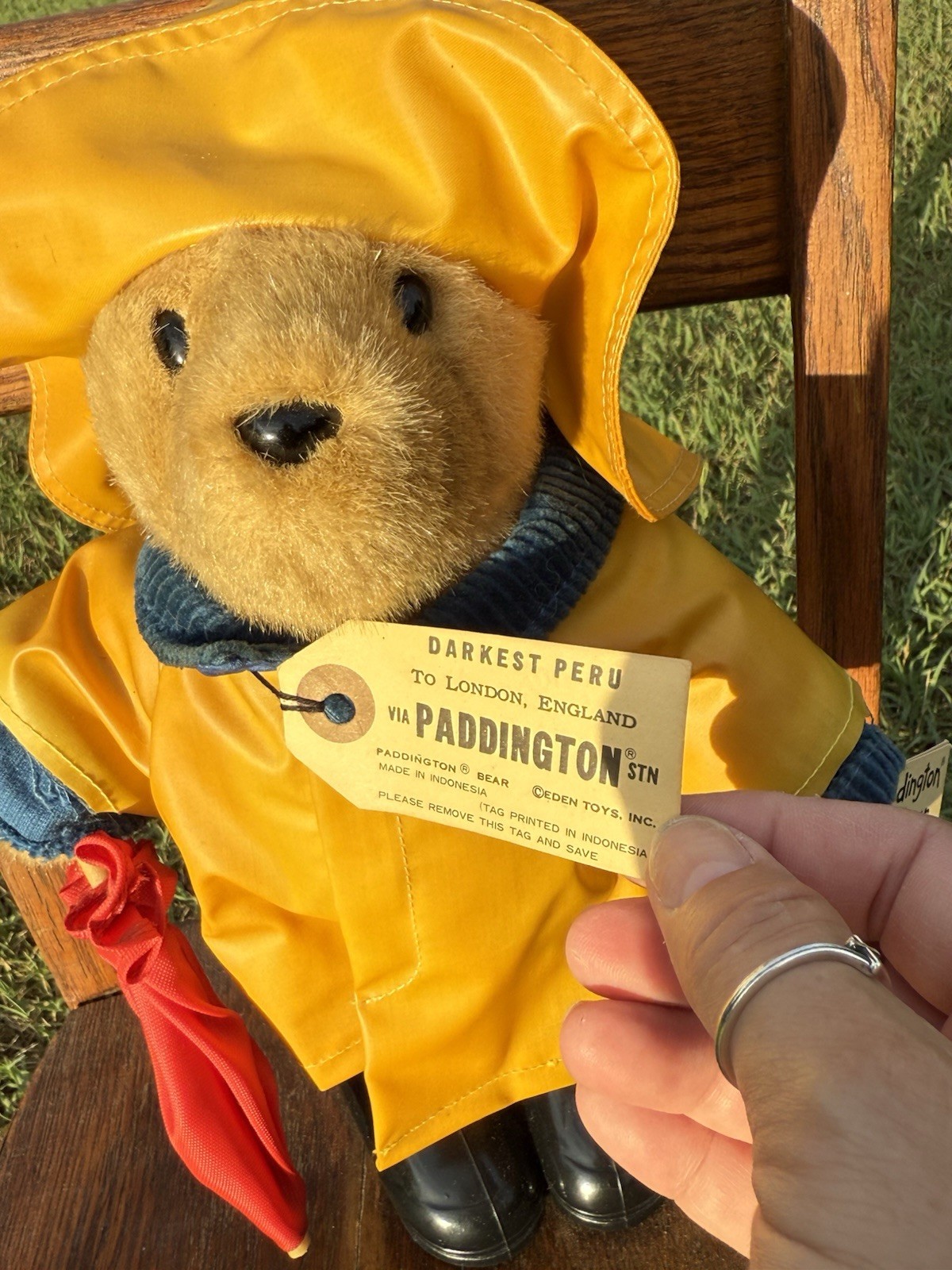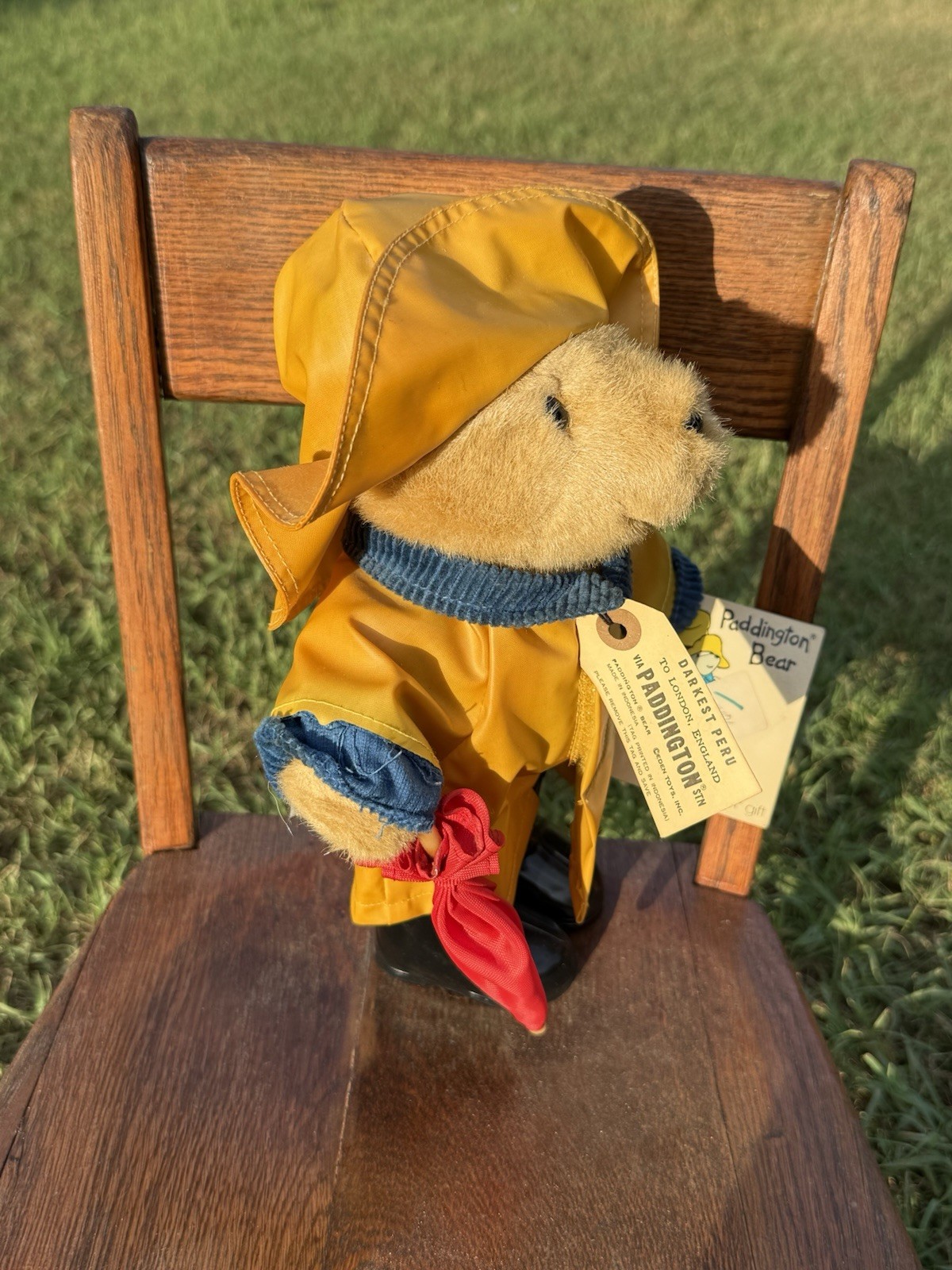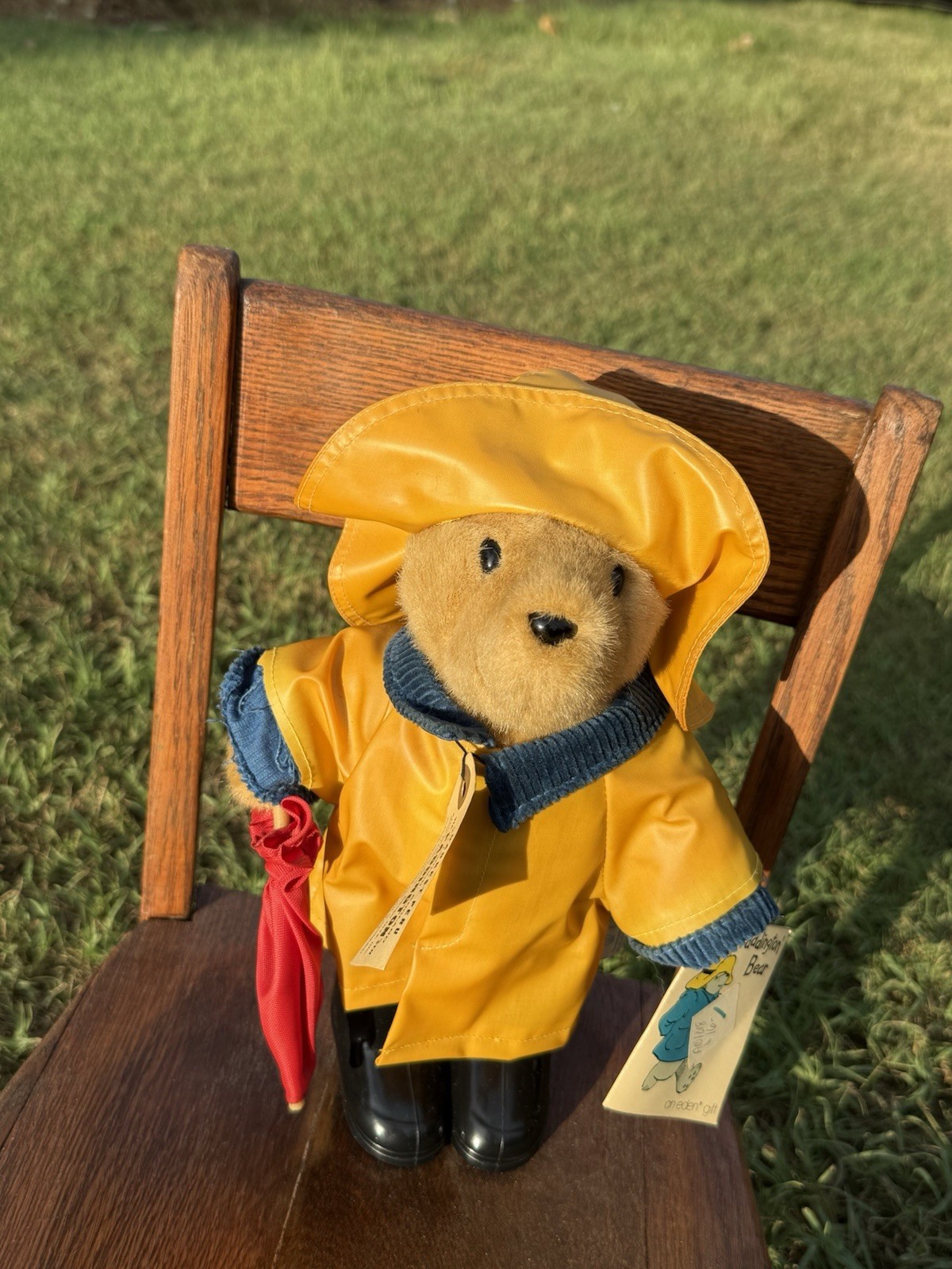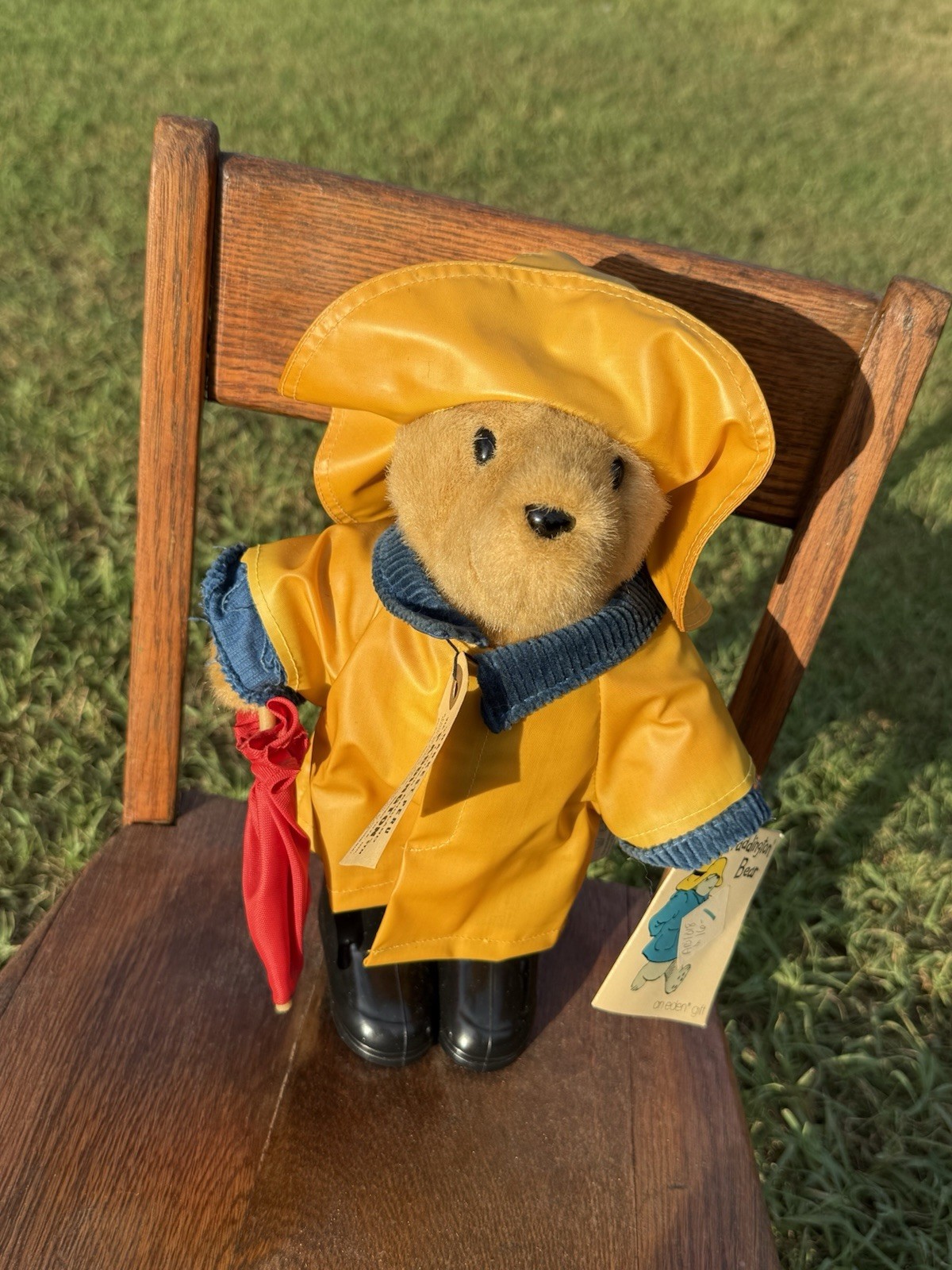 RARE 11 PADDINGTON BEAR EDEN TOYS TAG YELLOW COAT RED UMBRELLA BLACK BOOTS