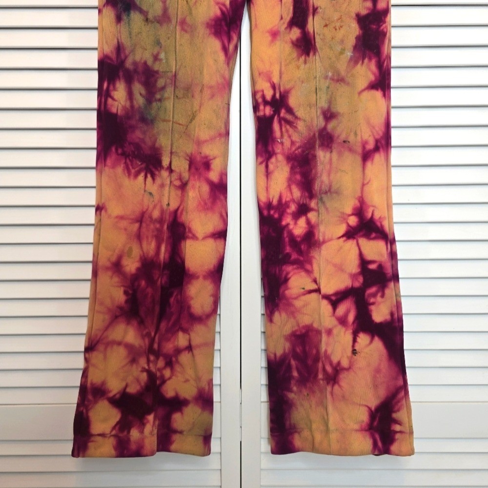 VTG Thrashed 70s Tie-Dye Pants Women Sz 10 Flare Artsy Y2K Festival Boho Grunge
