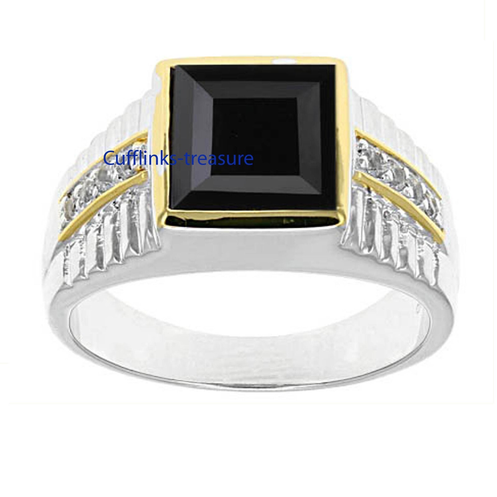 Natural Black Onyx CZ Gemstones with 925 sterling Silver Gold Plated Ring Ct5