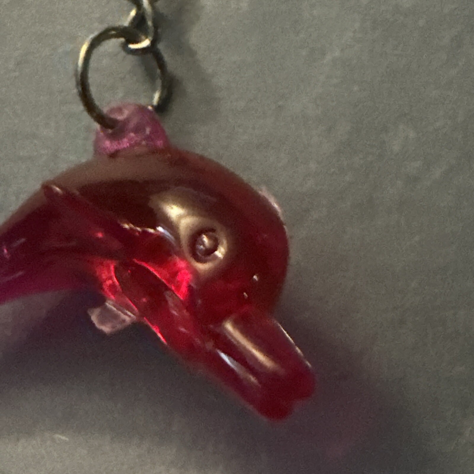 • Small Red Plastic Dolphin Novelty Keychain/Keyring