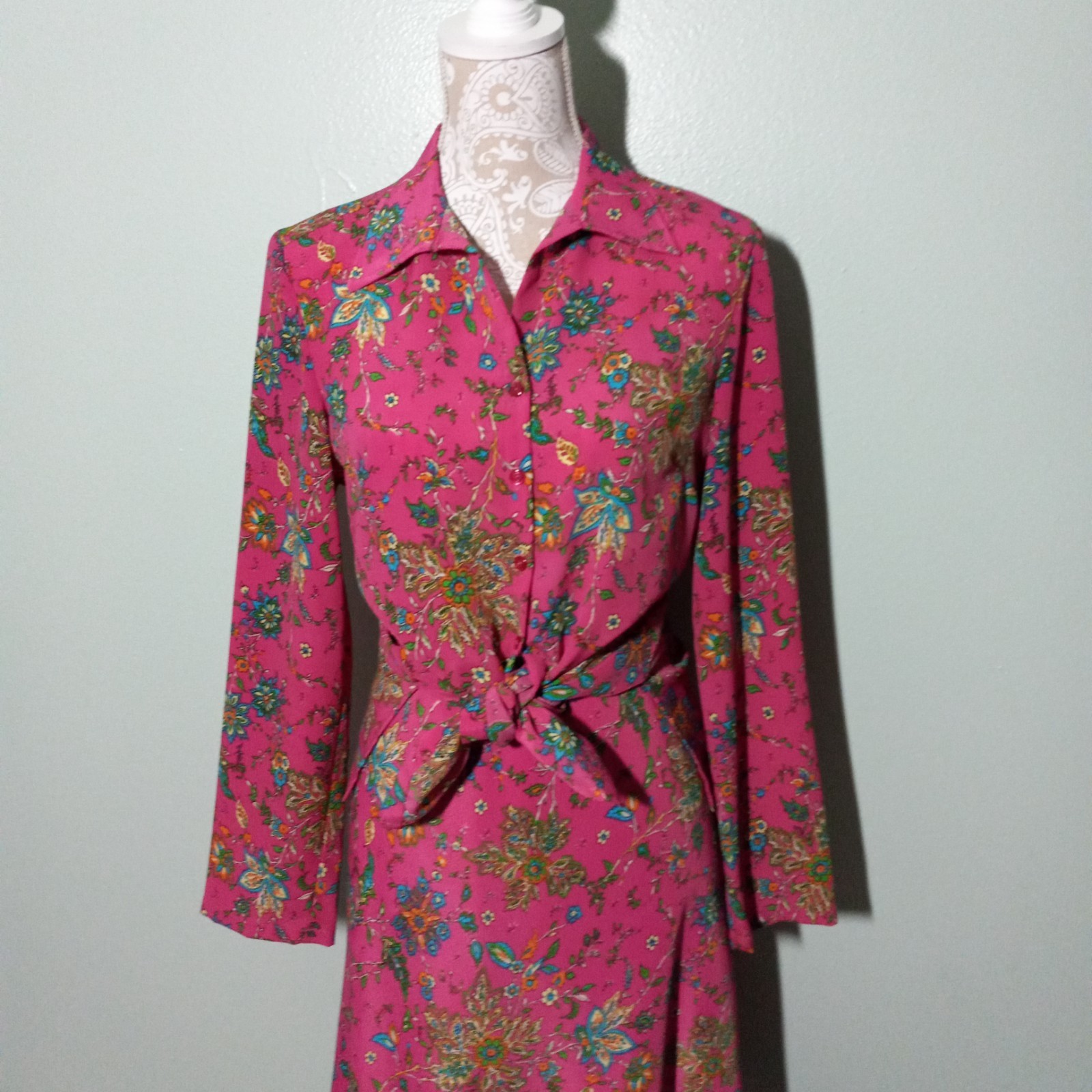 как выглядит Vintage 70s Set size Small, Tunic Top Skirt Pink Floral Preppy Cottagecore Retro фото