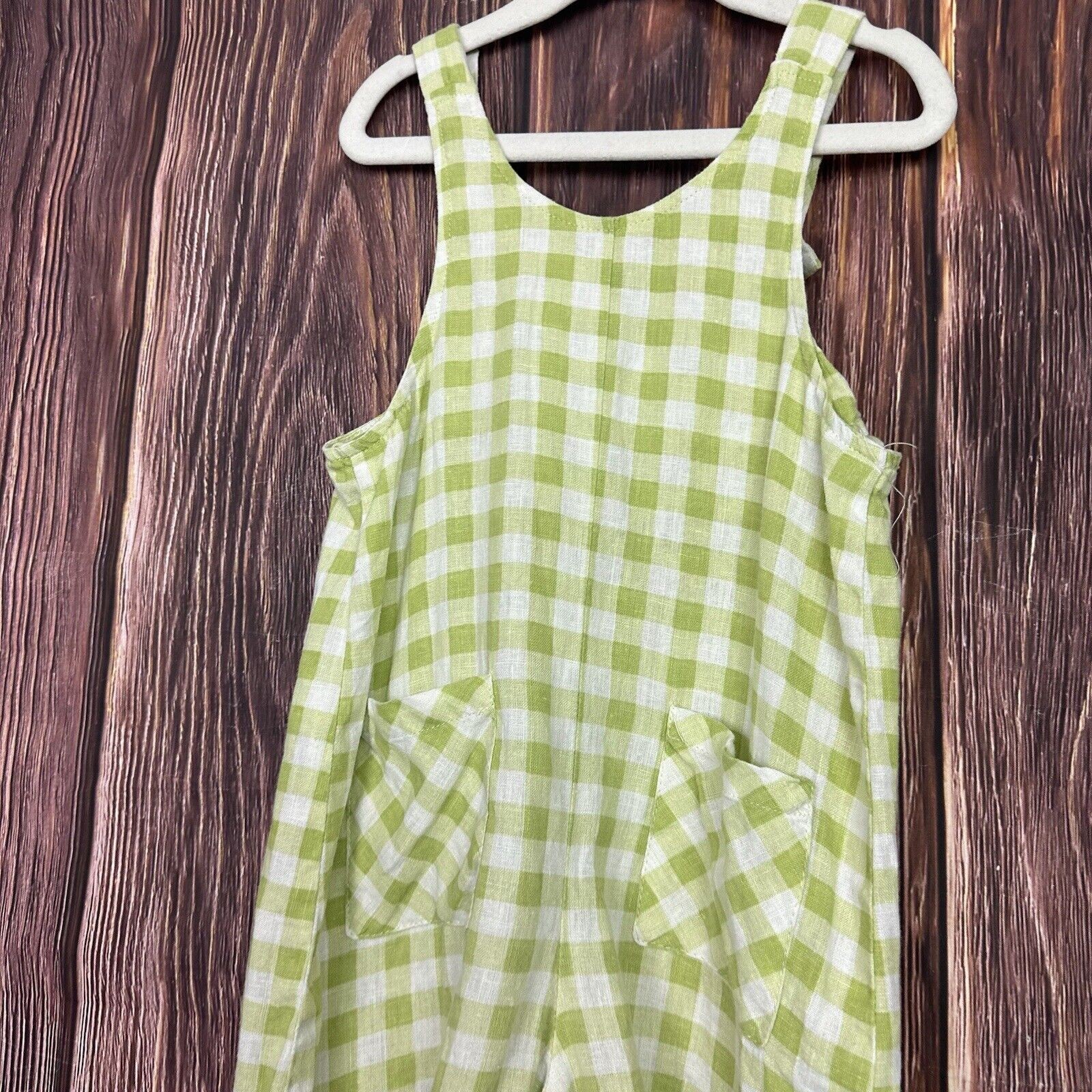 Zara Girls Romper Green White Plaid Gingham Linen Jumpsuit Size 3-4 Years