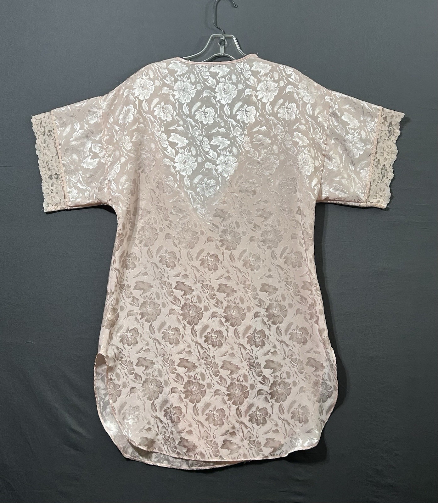 Victoria s Secret Night Shirt Sz M/L Petite Pink Floral Jacquard Button Front