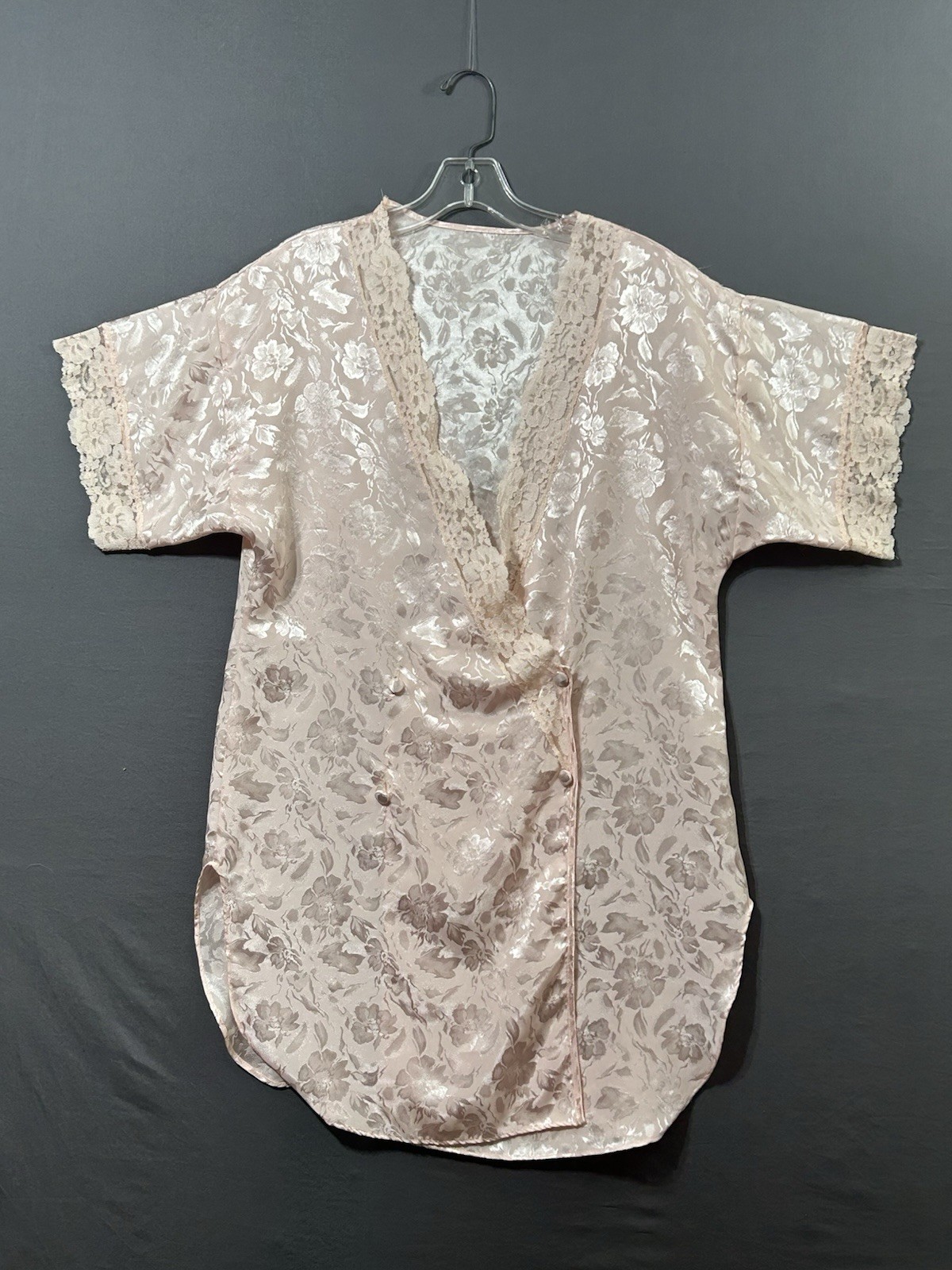 как выглядит Victoria s Secret Night Shirt Sz M/L Petite Pink Floral Jacquard Button Front фото